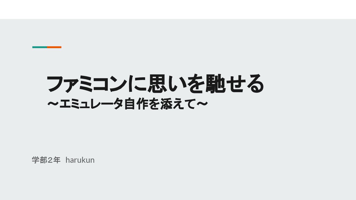 ファミコンに思いを馳せる 〜エミュレータ自作を添えて〜 学部2年 harukun