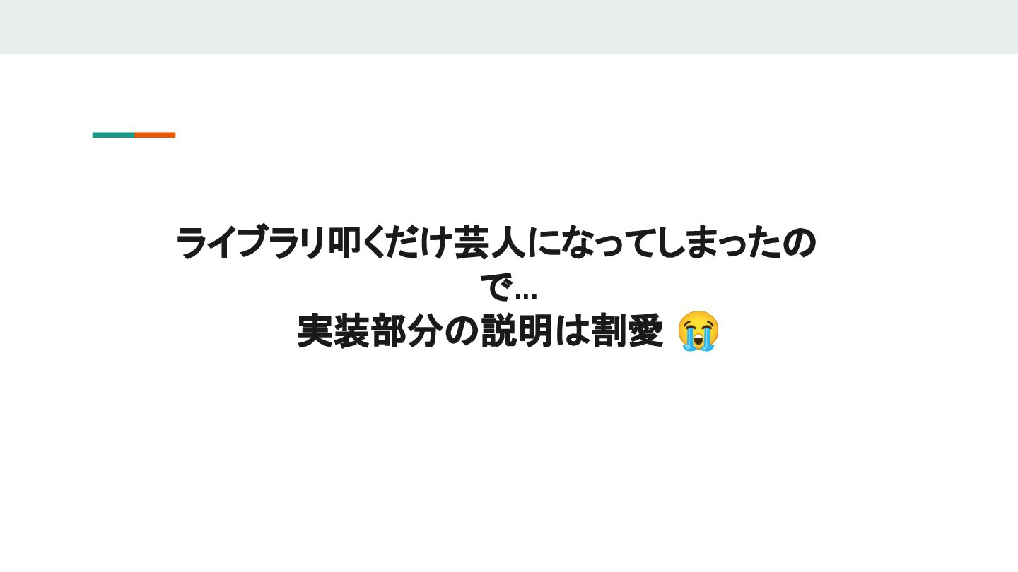 ライブラリ叩くだけ芸人になってしまったの で... 実装部分の説明は割愛 😭