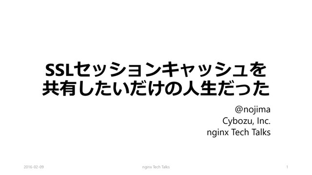 SSLセッションキャッシュを 共有したいだけの人生だった @nojima Cybozu, Inc. nginx Tech Talks 2016-02-09 nginx
