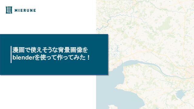 登壇者写真・アイコンが入るスペースです 漫画で使えそうな背景画像を blenderを使って作ってみた! ・西尾悟(株式会社MIEURNE所属・AIGID出向中) ・MIERUNE(https://www.mierune.co.jp/ ) ・AIGID(https://aigid.jp/ ) ・Twitterやってます(@nokonoko_1203) ・https://twitter.com/nokonoko_1203