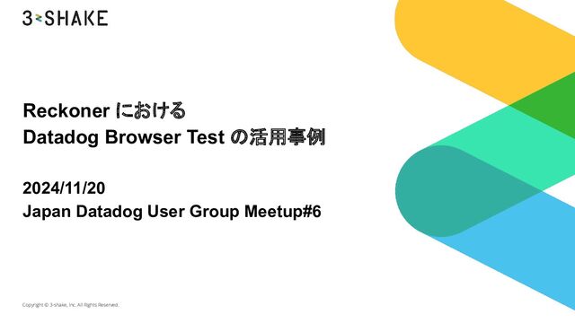 Reckoner における Datadog Browser Test の活用事例 2024/11/20 Japan Datadog User