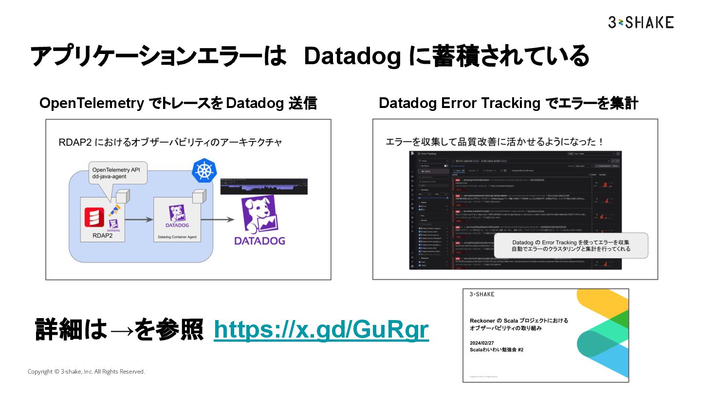 Copyright © 3-shake, Inc. All Rights Reserved. アプリケーションエラーは Datadog に蓄積されている