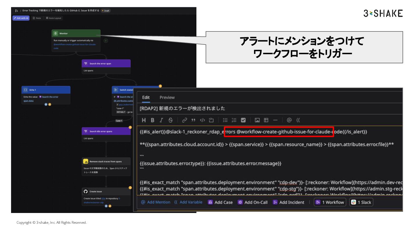 Copyright © 3-shake, Inc. All Rights Reserved. アラートにメンションをつけて ワークフローをトリガー
