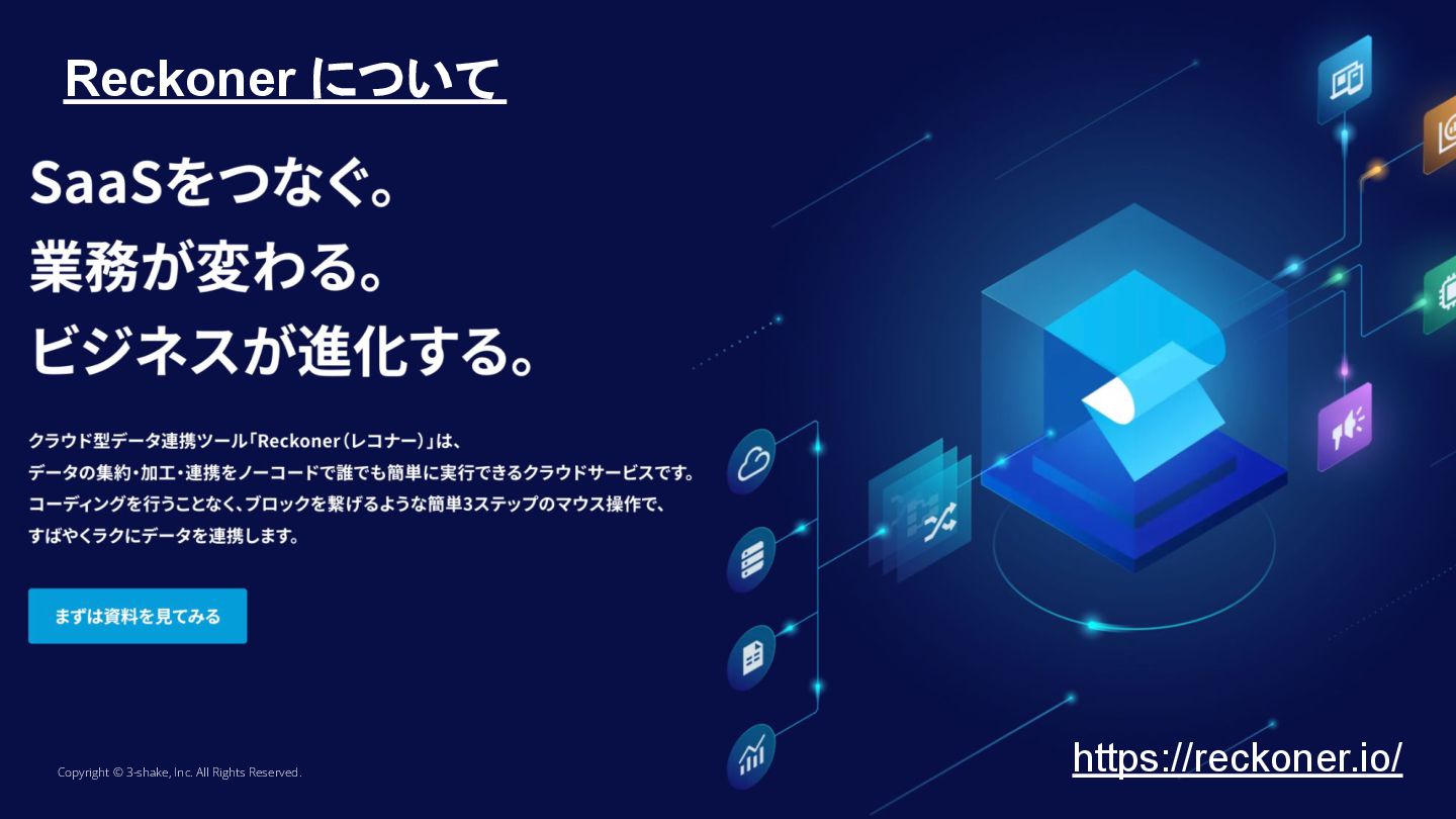 Reckoner について Copyright © 3-shake, Inc. All Rights Reserved. https://reckoner.io/