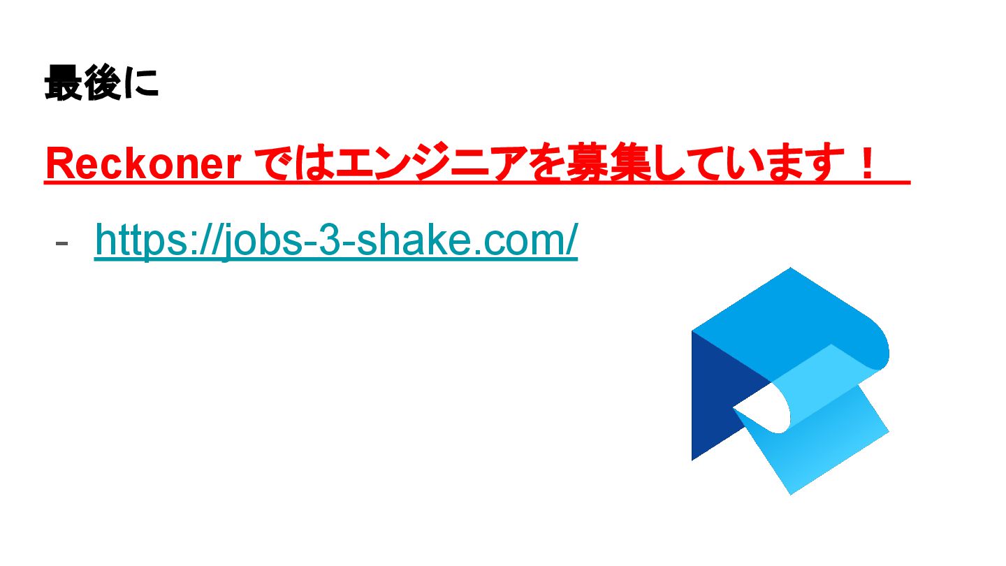 最後に Reckoner ではエンジニアを募集しています! - https://jobs-3-shake.com/