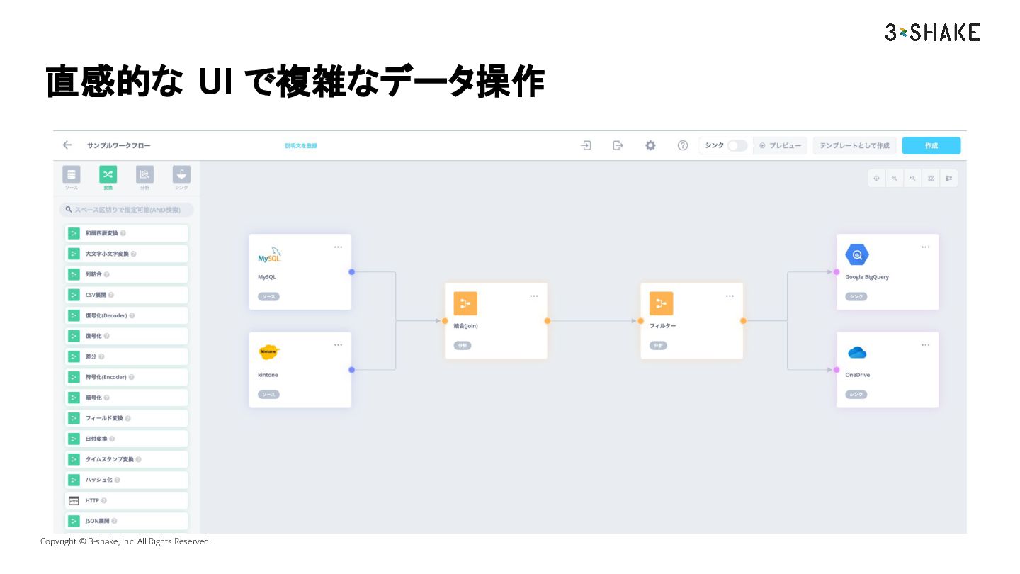 直感的な UI で複雑なデータ操作 Copyright © 3-shake, Inc. All Rights Reserved.