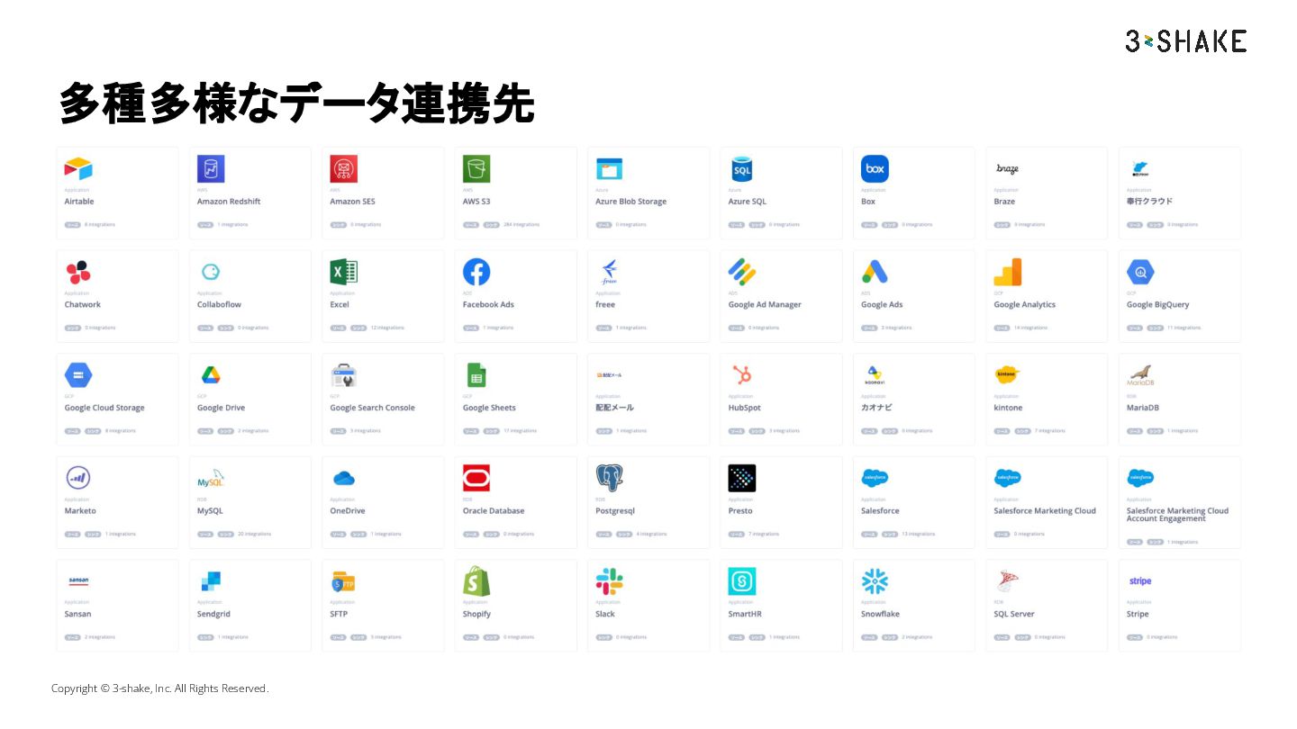 多種多様なデータ連携先 Copyright © 3-shake, Inc. All Rights Reserved.
