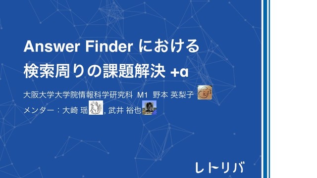 Answer Finder ʹ͓͚Δ ݕࡧपΓͷ՝ղܾ +α େࡕେֶେֶӃใՊֶݚڀՊ M1 ຊ ӳསࢠ ϝϯλʔɿେ࡚