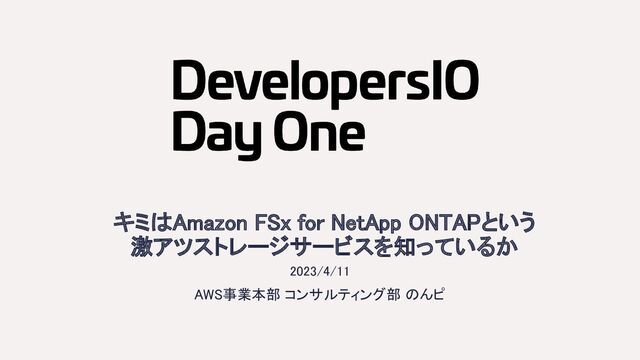 キミはAmazon FSx for NetApp ONTAPという 激アツストレージサービスを知っているか 2023/4/11 AWS事業本部 コンサルティング部 のんピ