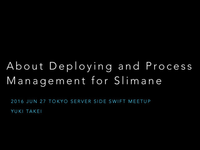 o u t D e p l o y i n g a n d P ro c e s s M a n a g e m e n t f o r S l i m a n e 2 0 1 6 J U N 2 7 T O K Y O S E R V E R S I D E S W I F T M E E T U P