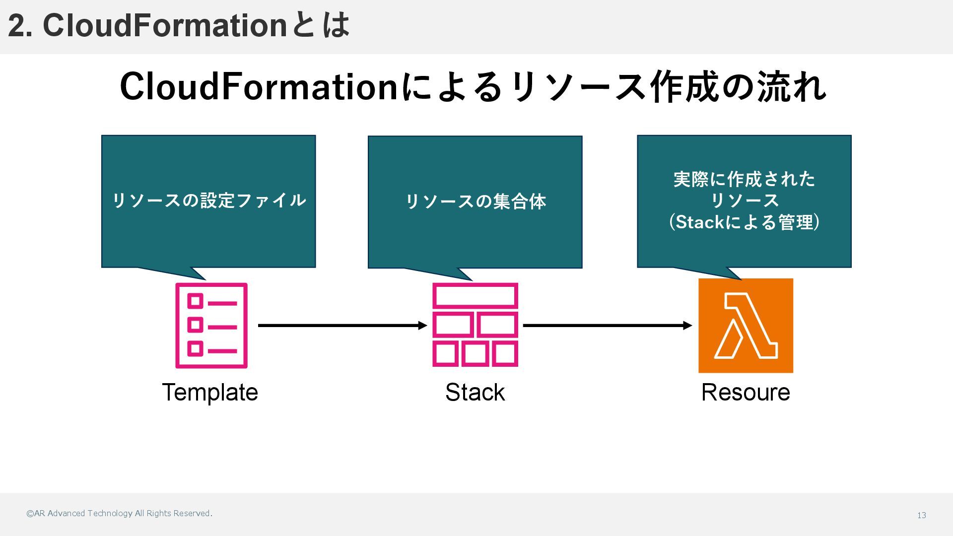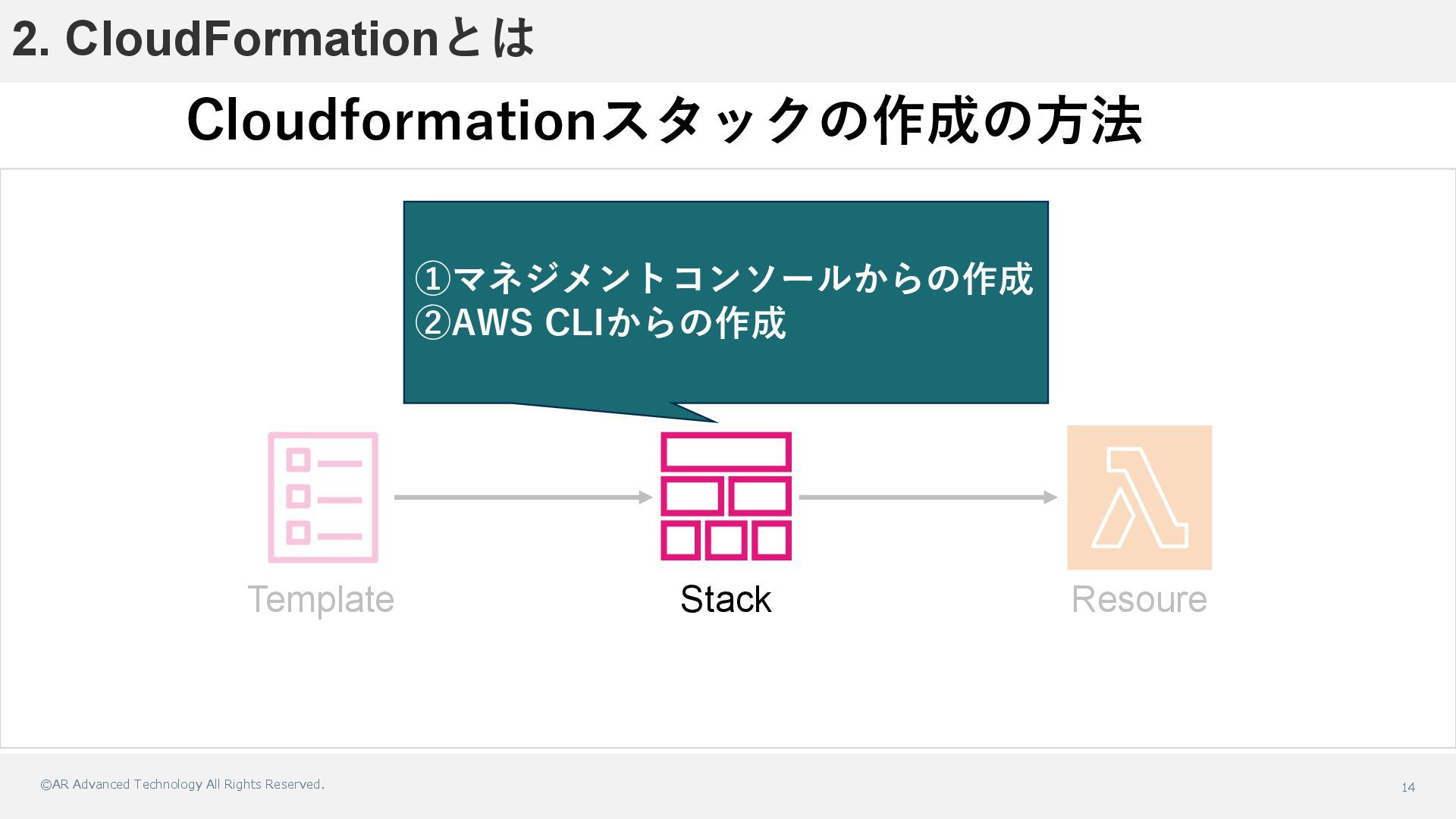 13 ©AR Advanced Technology All Rights Reserved. 2. CloudFormationとは Stack