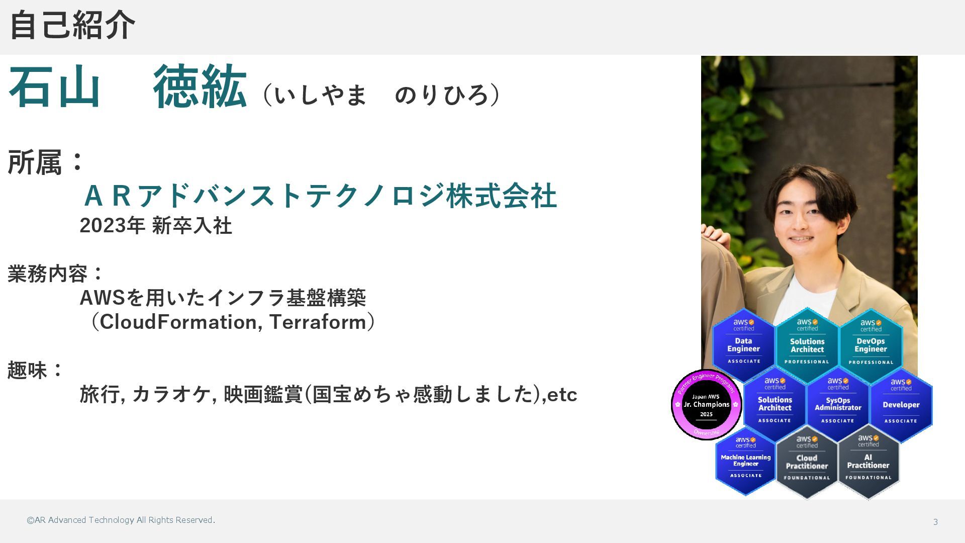 3 ©AR Advanced Technology All Rights Reserved. 自己紹介 石山 徳紘(いしやま