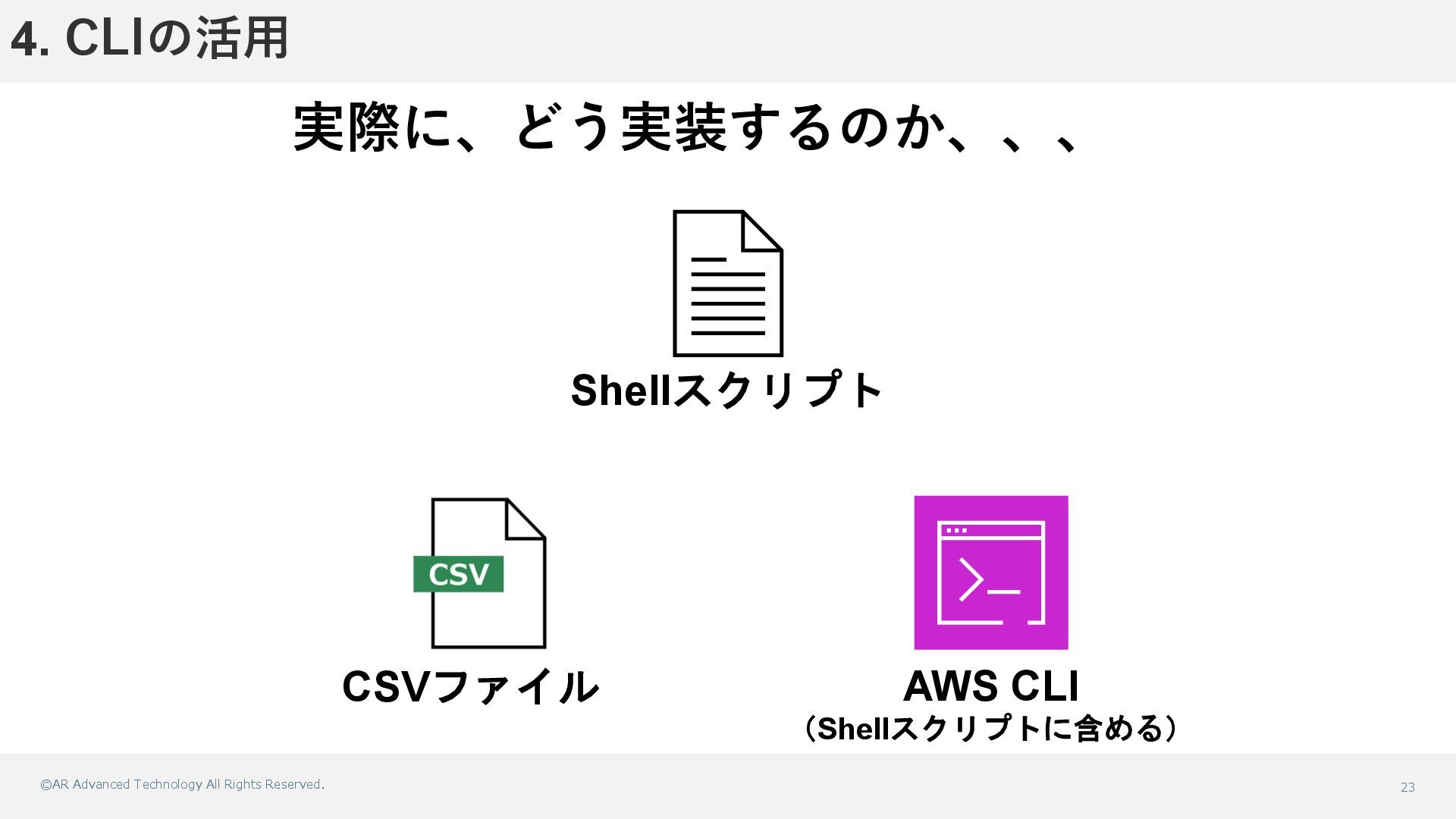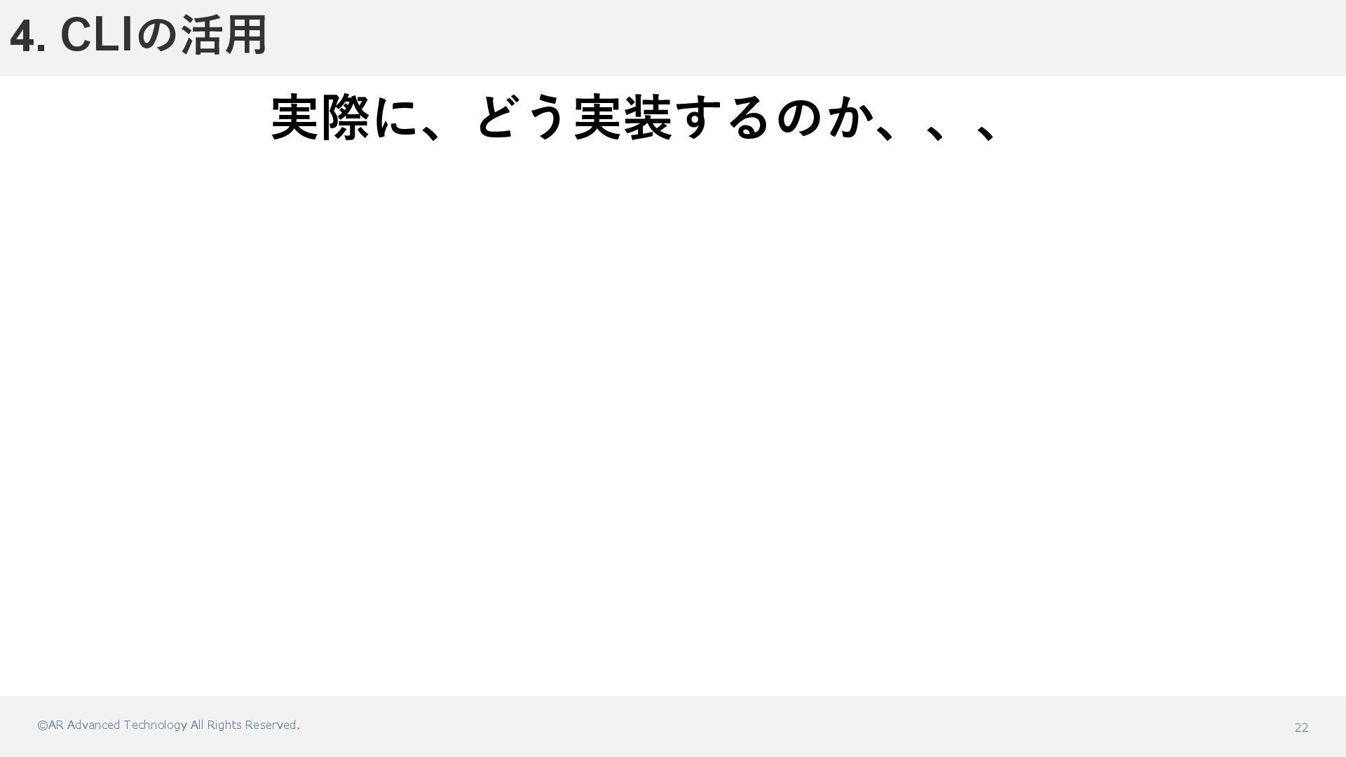 22 ©AR Advanced Technology All Rights Reserved. 4. CLIの活用 実際に、どう実装するのか、、、