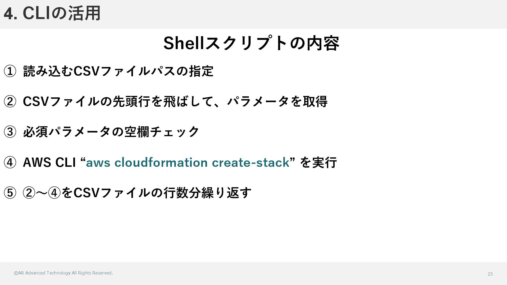24 ©AR Advanced Technology All Rights Reserved. (Shellスクリプトに含める) AWS CLI