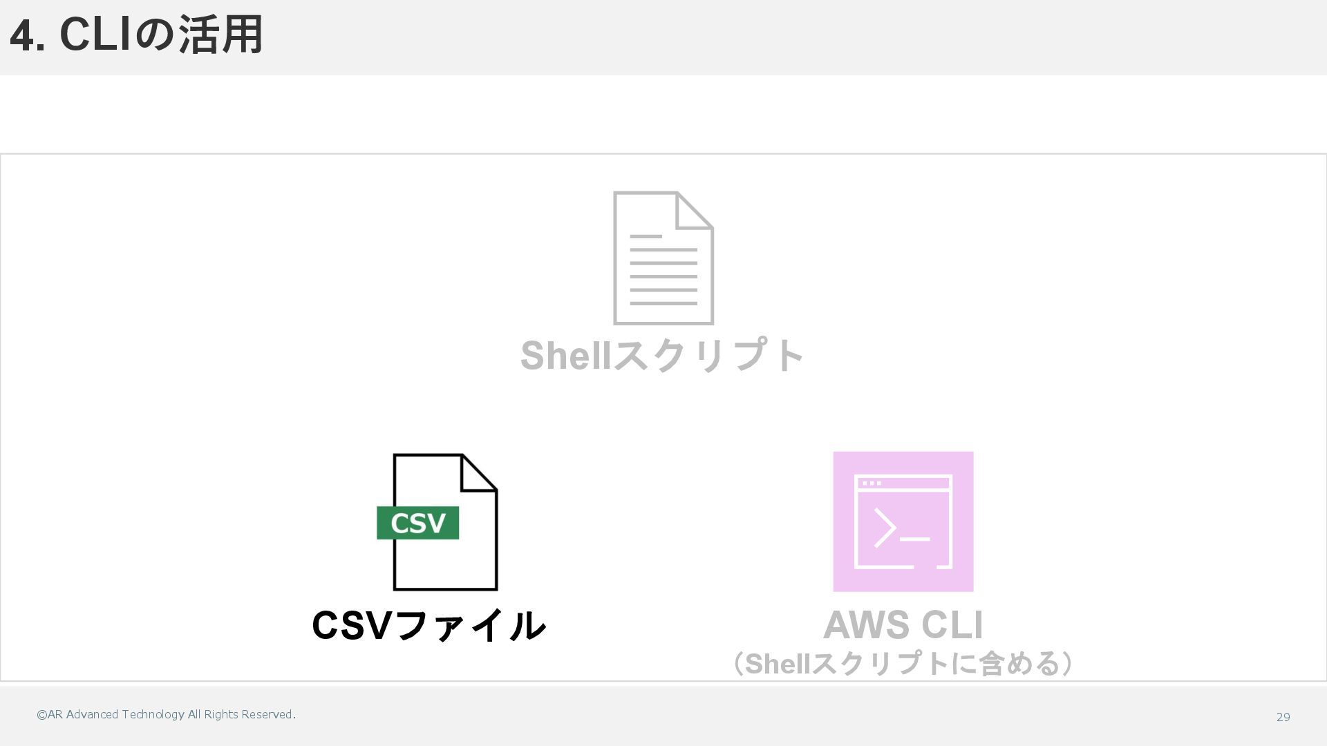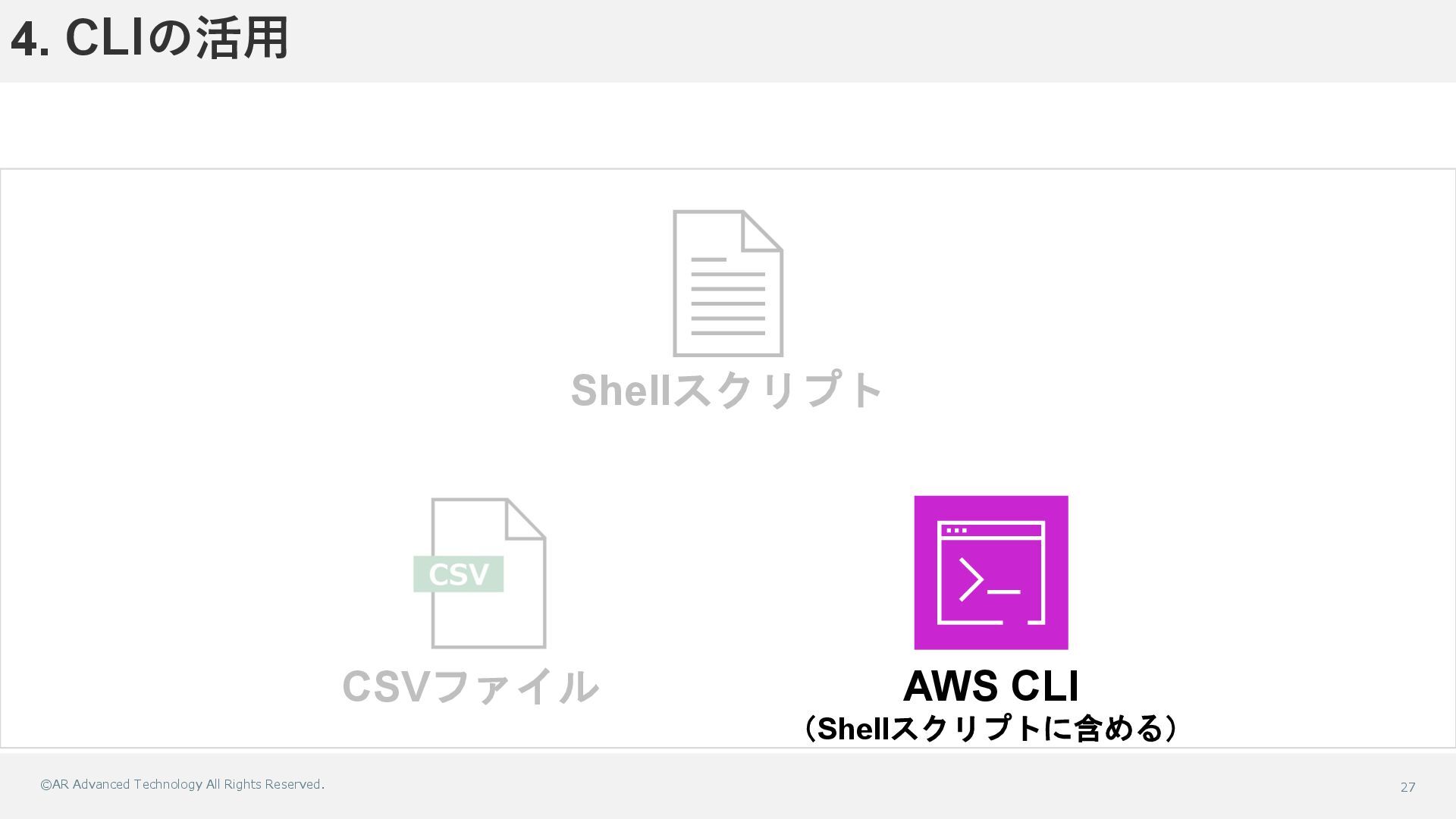 27 ©AR Advanced Technology All Rights Reserved. CSVファイル Shellスクリプト AWS