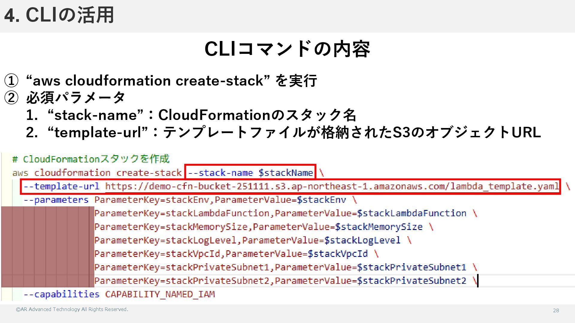 28 ©AR Advanced Technology All Rights Reserved. 4. CLIの活用 CLIコマンドの内容