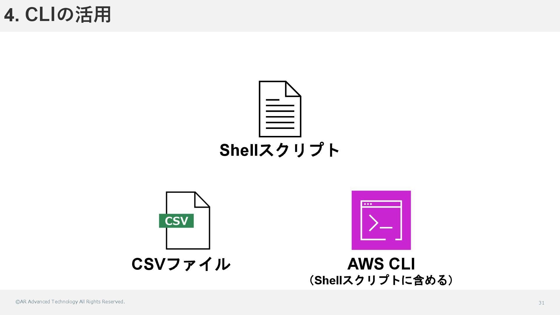 31 ©AR Advanced Technology All Rights Reserved. 4. CLIの活用 AWS