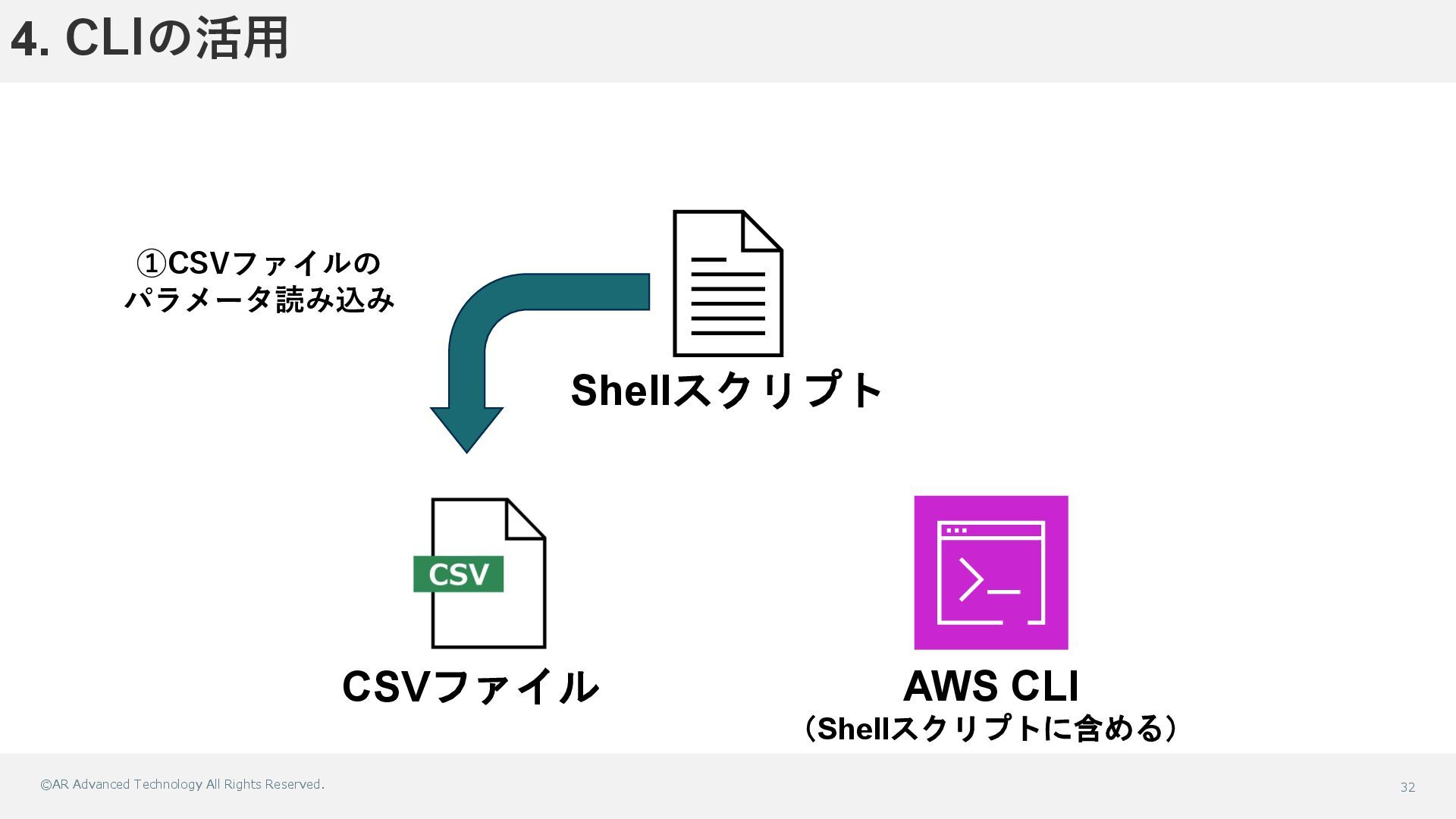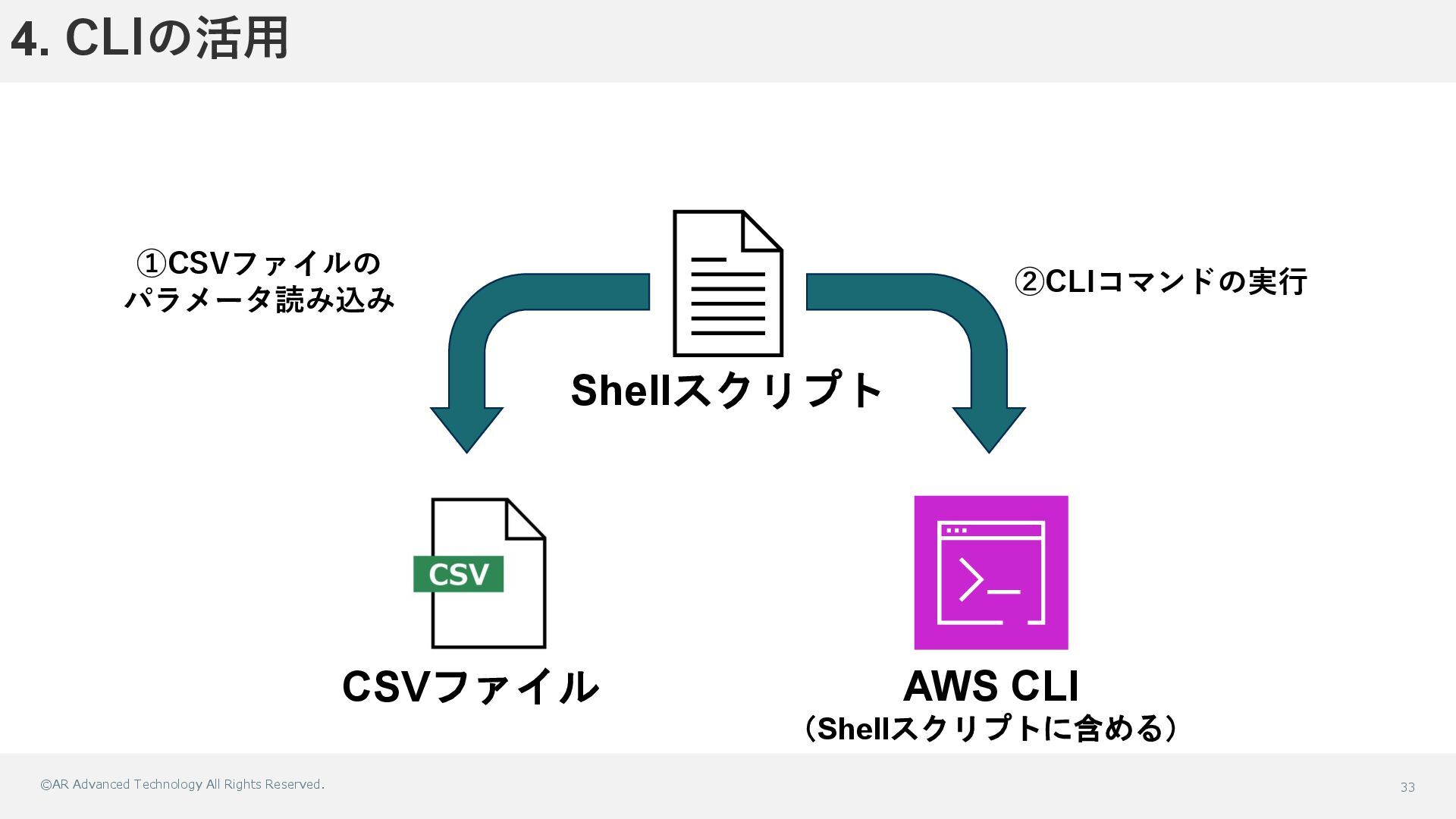 32 ©AR Advanced Technology All Rights Reserved. 4. CLIの活用 AWS