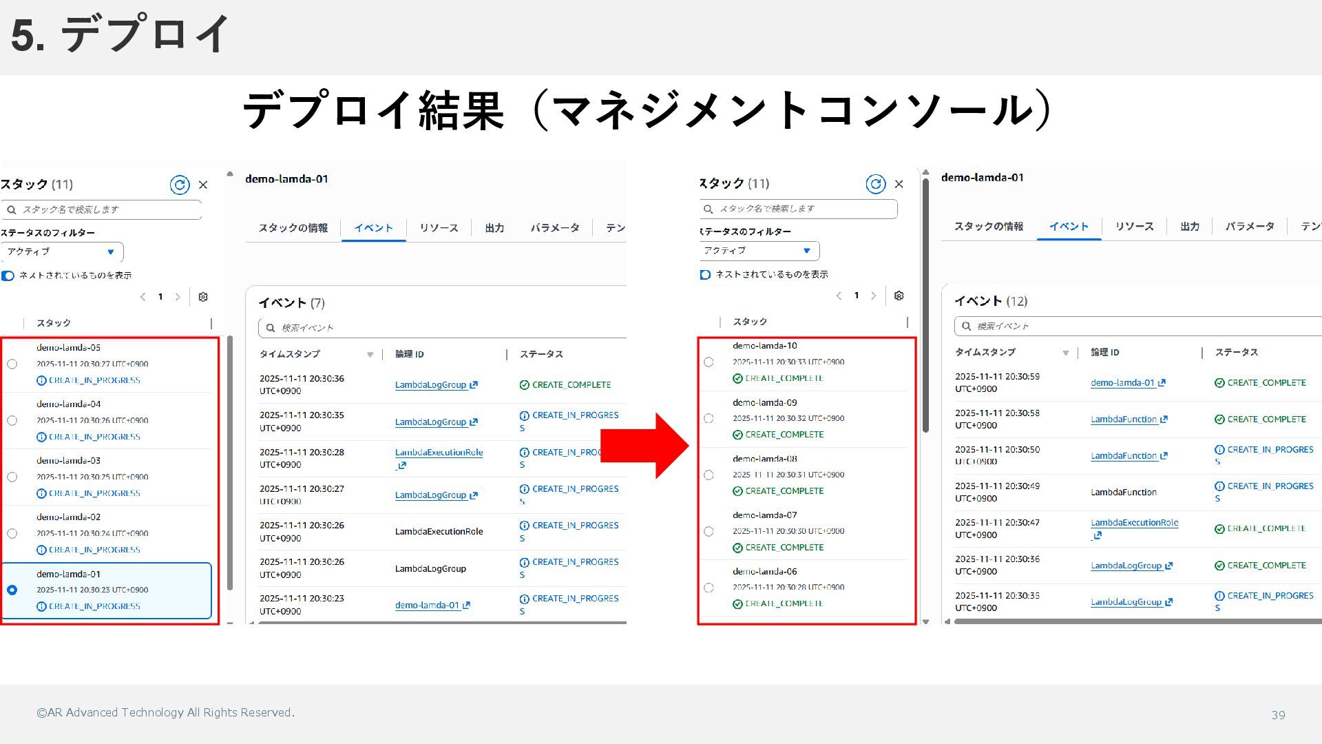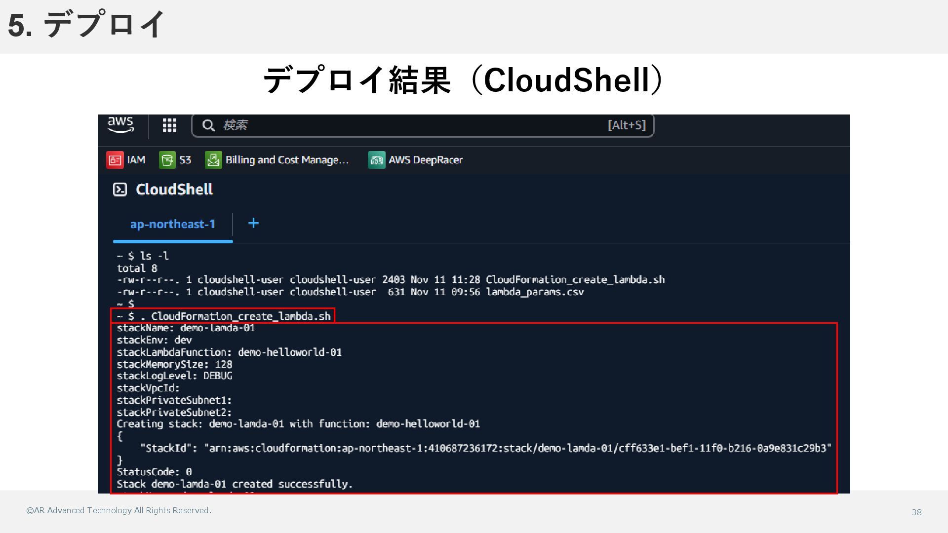 38 ©AR Advanced Technology All Rights Reserved. デプロイ結果(CloudShell) 5. デプロイ