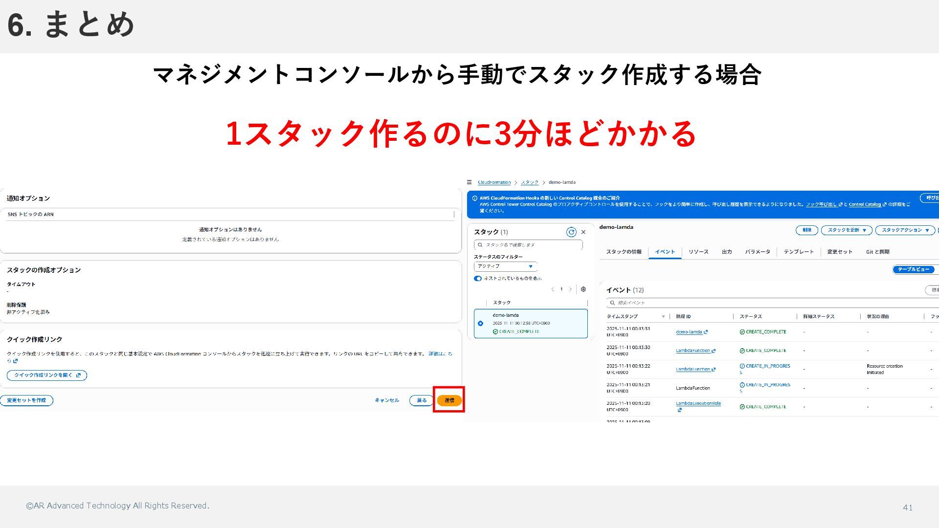 41 ©AR Advanced Technology All Rights Reserved. 6. まとめ マネジメントコンソールから手動でスタック作成する場合