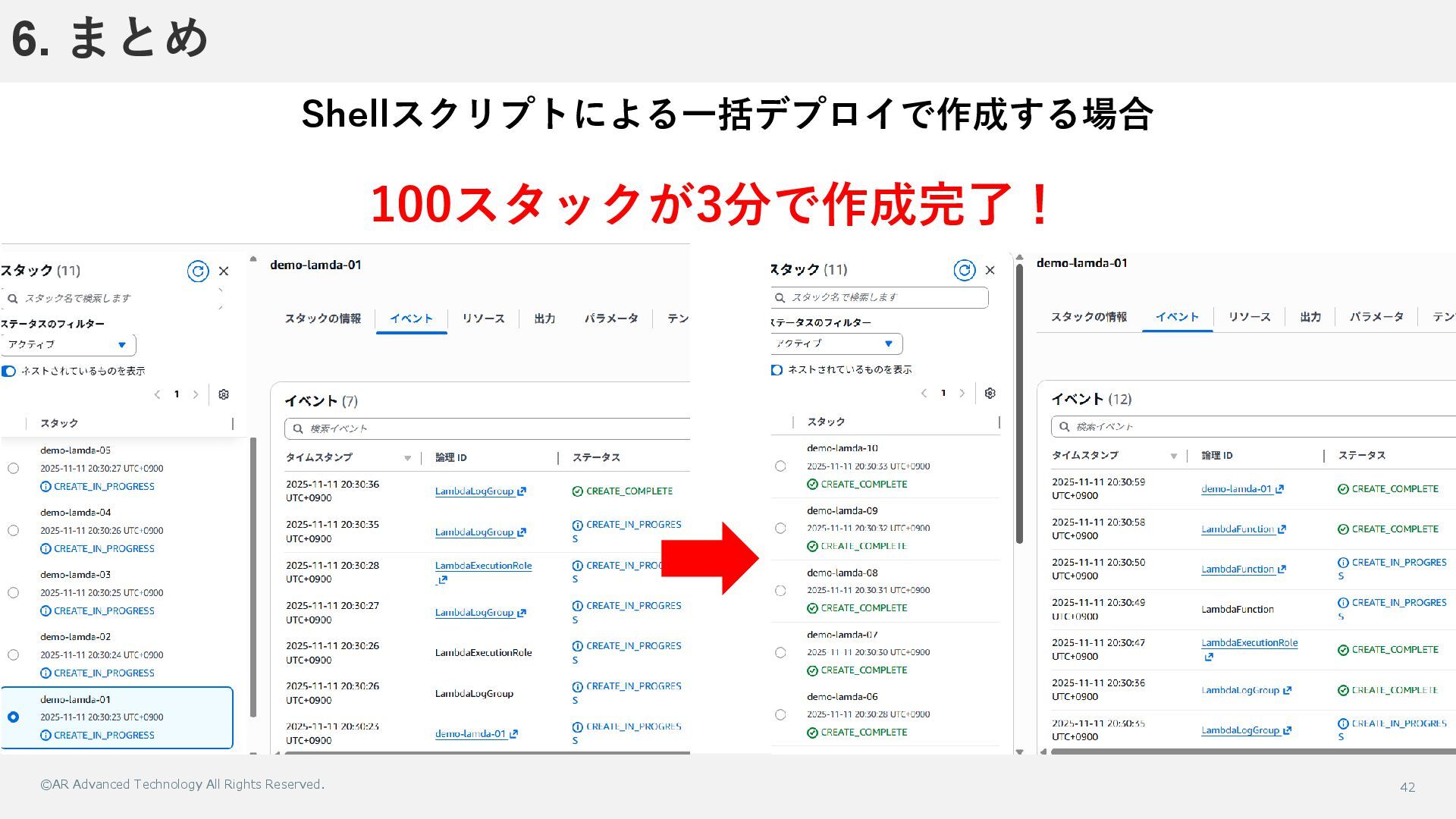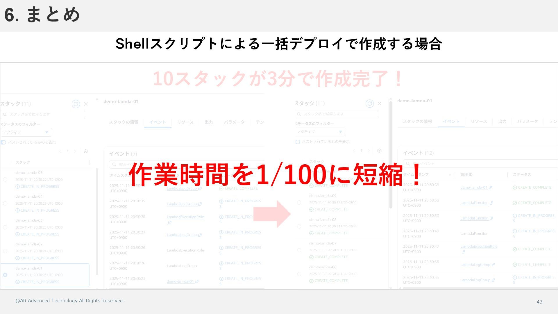 42 ©AR Advanced Technology All Rights Reserved. 6. まとめ Shellスクリプトによる一括デプロイで作成する場合