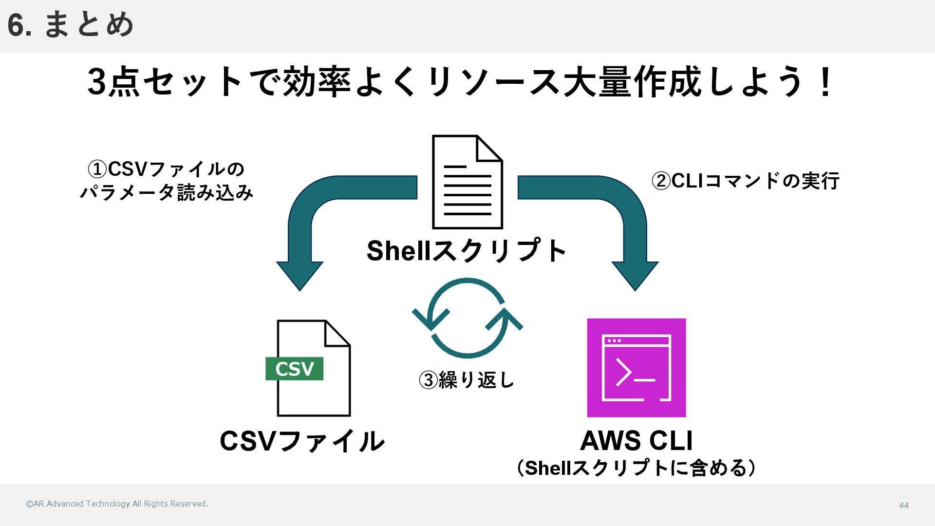 43 ©AR Advanced Technology All Rights Reserved. 6. まとめ Shellスクリプトによる一括デプロイで作成する場合