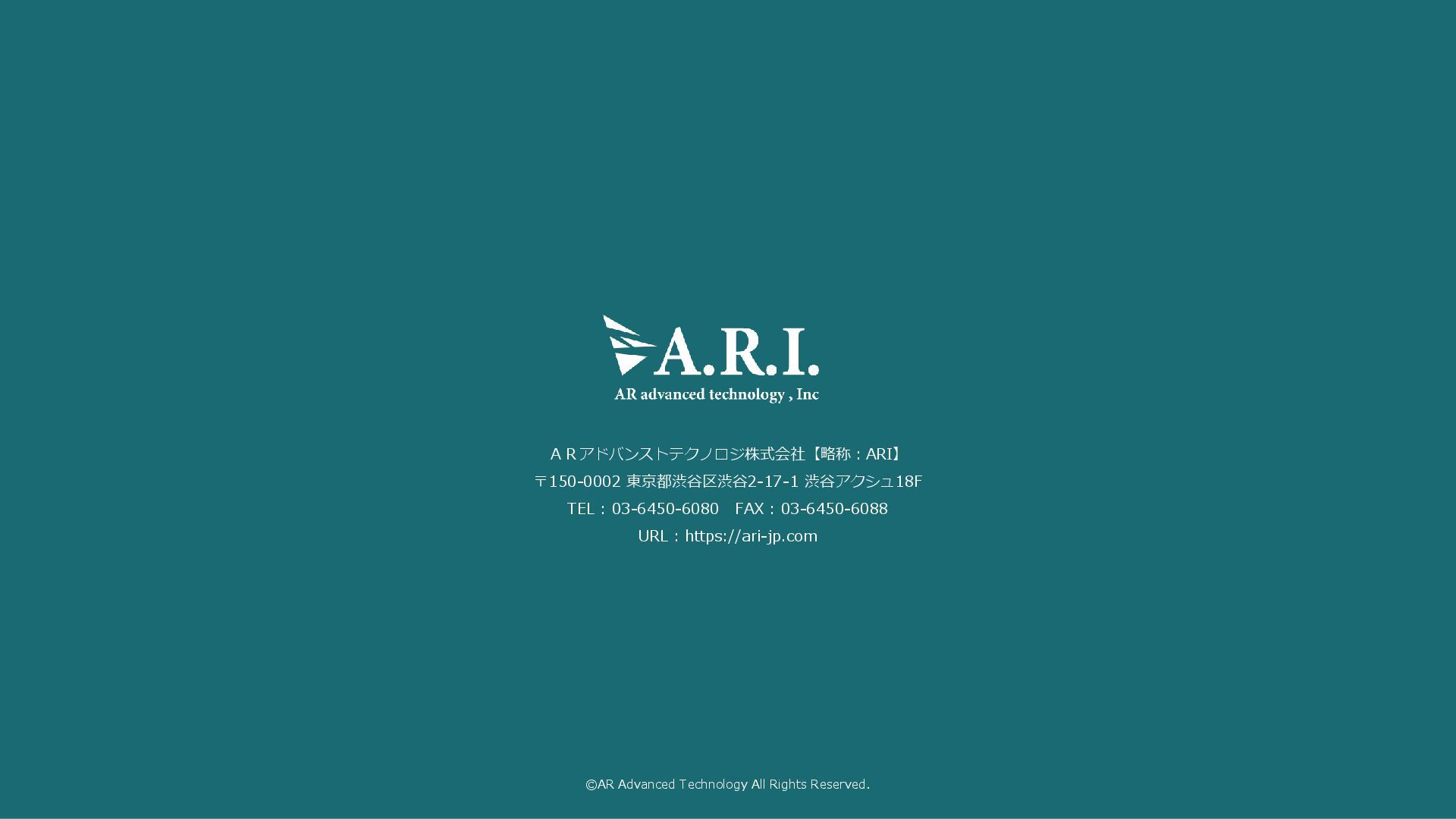45 ©AR Advanced Technology All Rights Reserved. ARアドバンストテクノロジ株式会社【略称:ARI】 〒150-0002 東京都渋谷区渋谷2-17-1