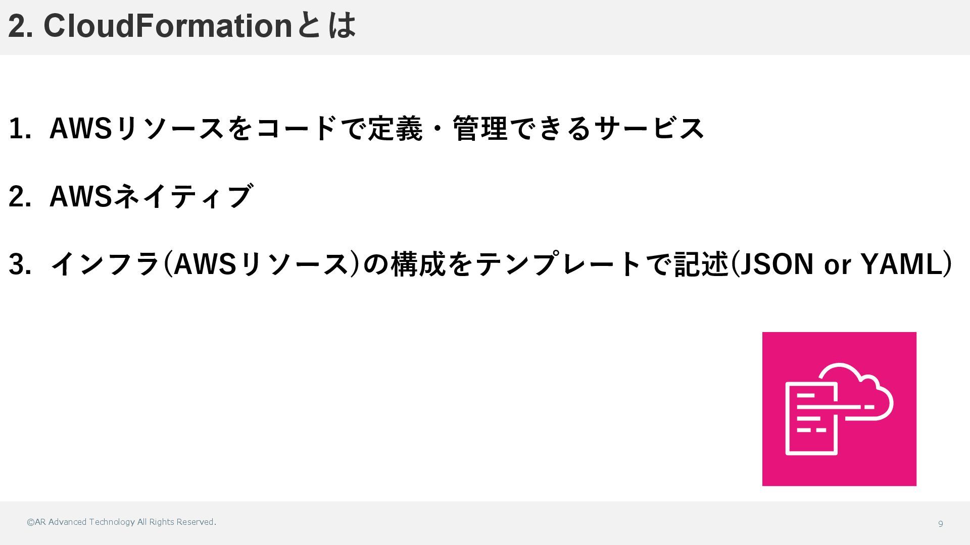 8 ©AR Advanced Technology All Rights Reserved. 2. CloudFormationとは