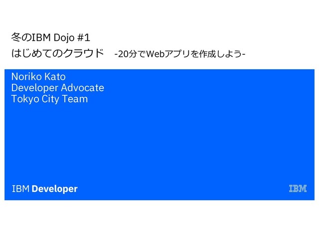 冬のIBM Dojo #1 はじめてのクラウド -20分でWebアプリを作成しよう- Noriko Kato Developer Advocate Tokyo