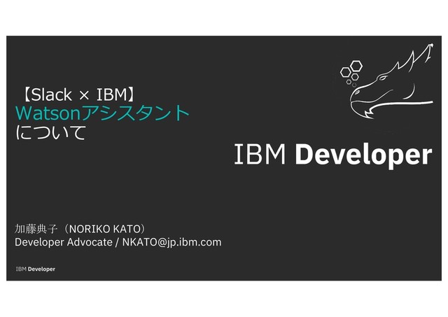 2019年3月11日にSlack様のオフィスにて共同開催させていただきましたセミナーの資料です。 Watson APIカタログ、Watson Assistantの使い方、Call for Code 2019、#TryIBMDevを紹介しています。