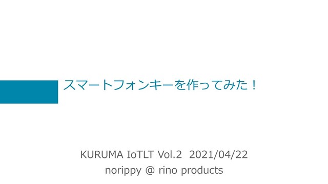 スマートフォンキーを作ってみた︕ KURUMA IoTLT Vol.2 2021/04/22 norippy @ rino products
