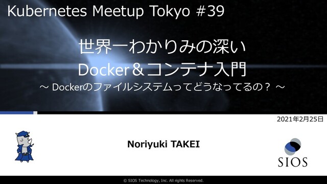 Dockerのファイルシステムってどうなってるの︖ 〜 Noriyuki TAKEI 2021年2⽉25⽇ Kubernetes Meetup Tokyo #39