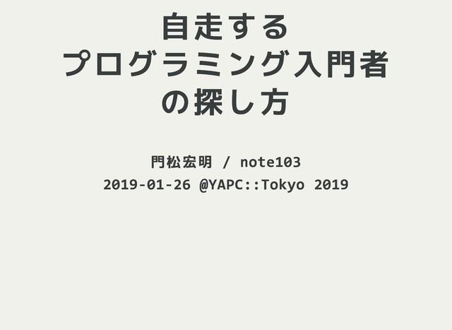 / note103 2019‑01‑26 @YAPC::Tokyo 2019 2019‑01‑26 @YAPC::Tokyo 2019