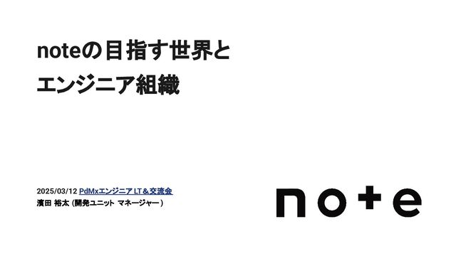 noteの目指す世界と エンジニア組織 2025/03/12 PdMxエンジニア LT&交流会 濱田 裕太 (開発ユニット マネージャー )