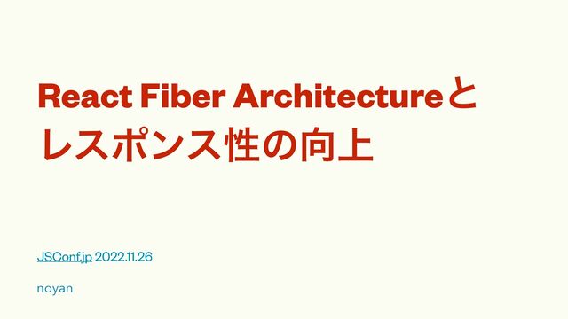 React Fiber Architectureͱ Ϩεϙϯεੑͷ্ JSConf.jp 2022.11.26 noyan