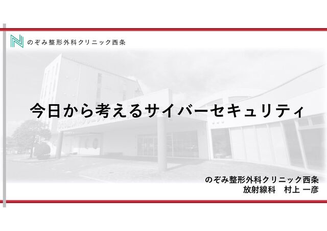 今日から考えるサイバーセキュリティ のぞみ整形外科クリニック西条 放射線科 村上 一彦