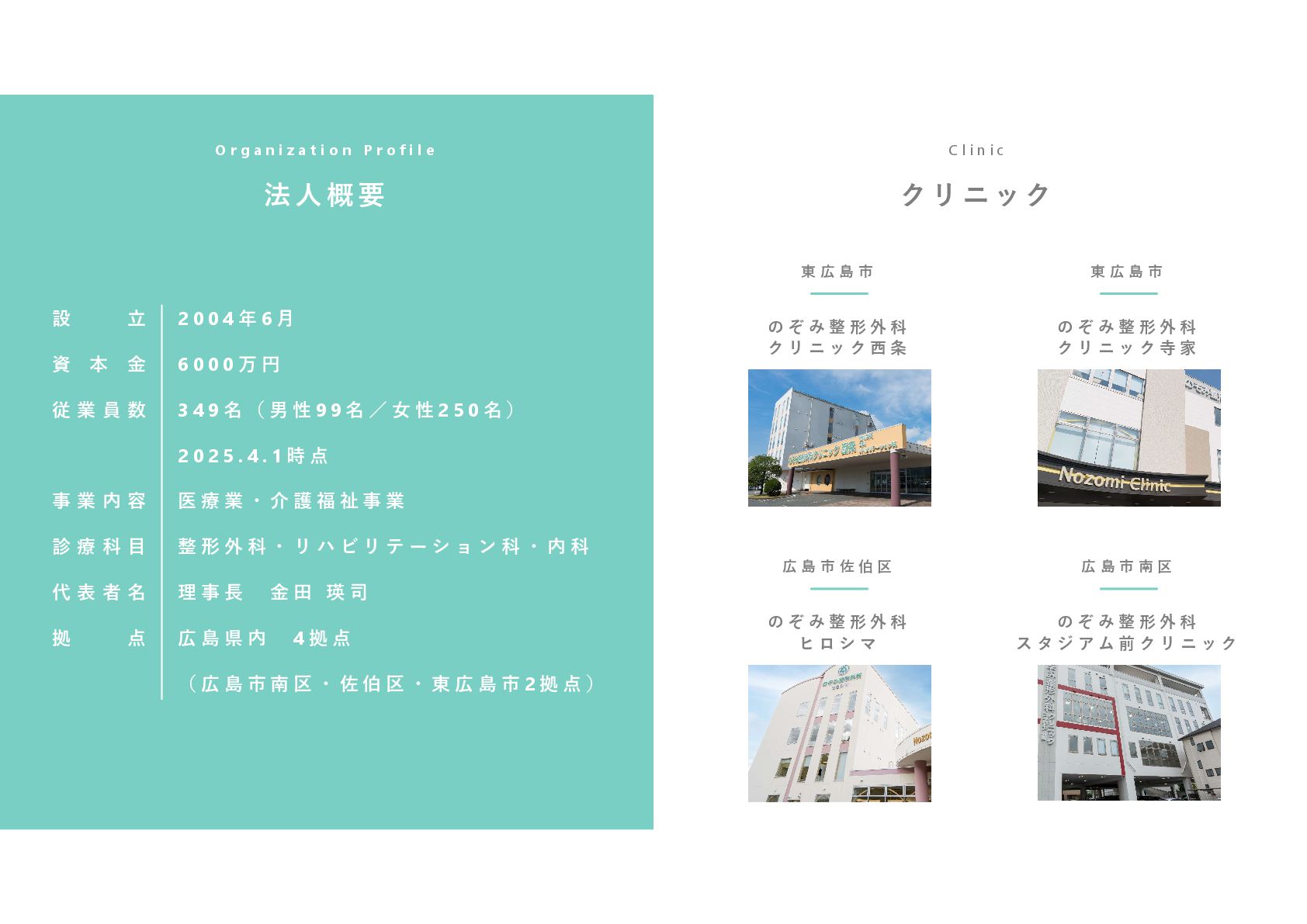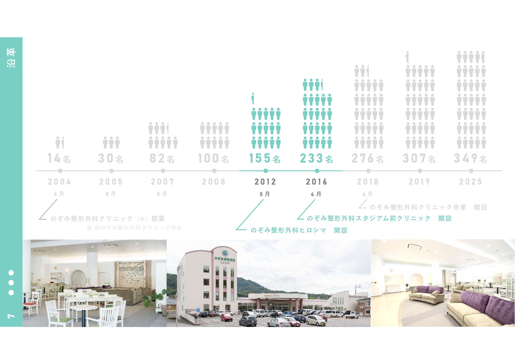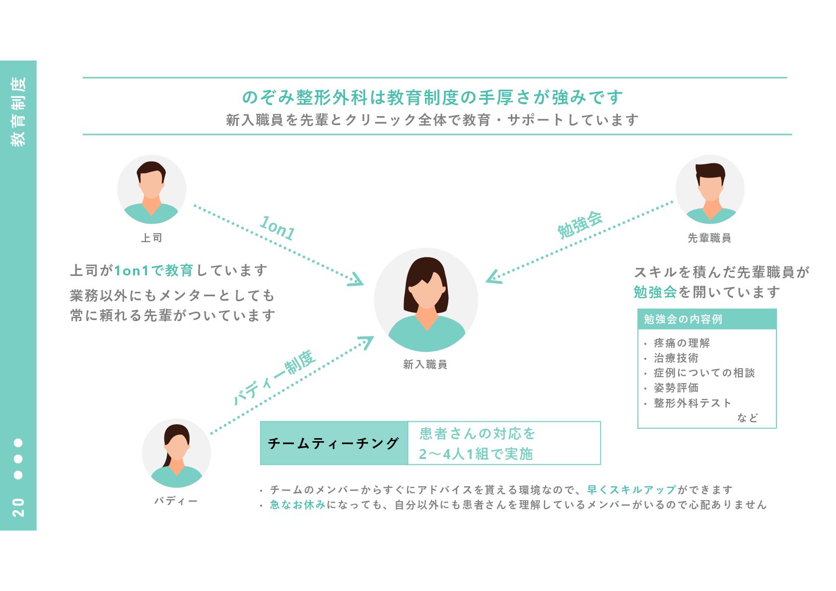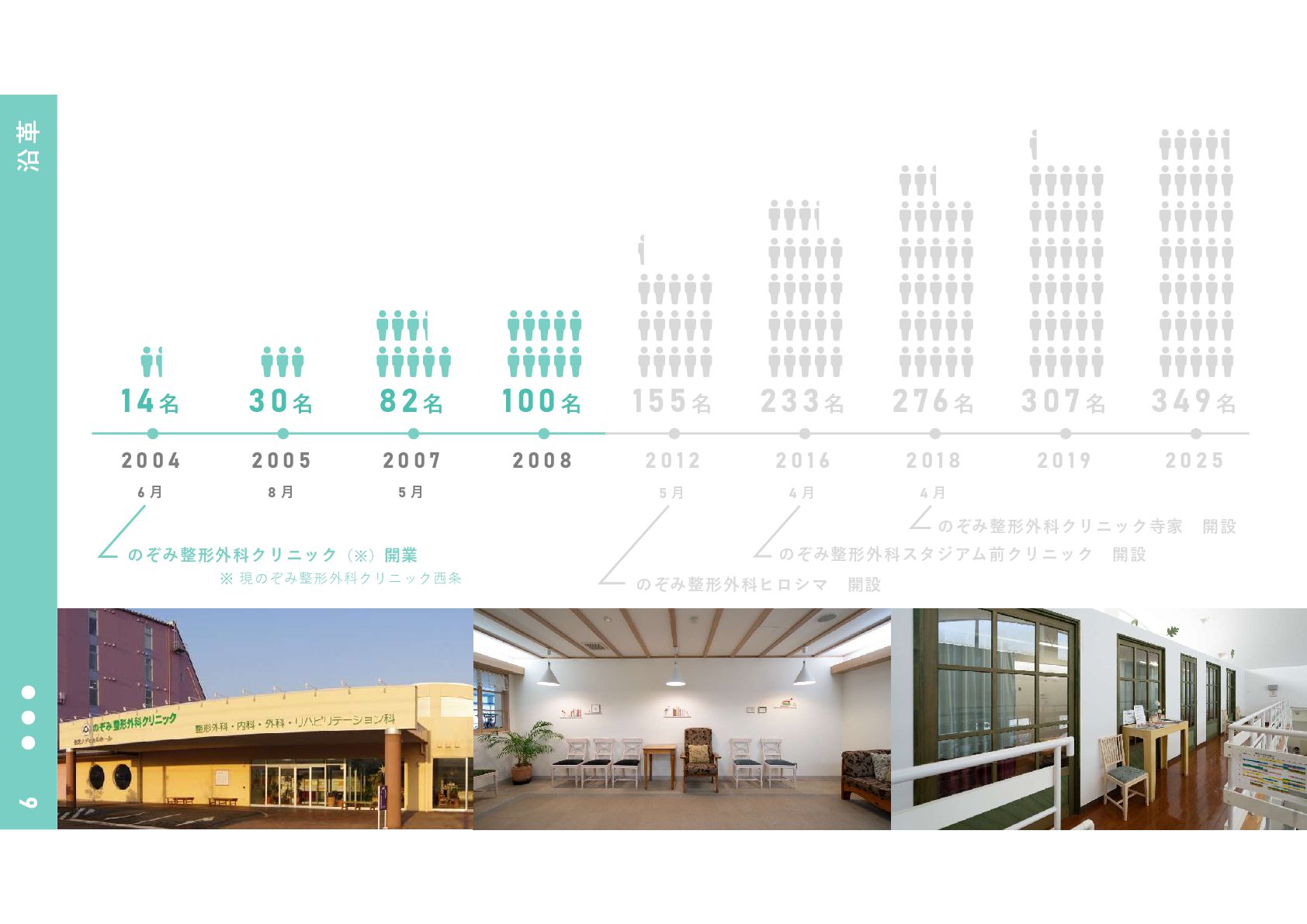 来院数 早期に様々な症例の経験が積めるため、スキルが身に付くスピードも速いことが特徴 平均対応人数/日 入 職 後 13,432 7,996 5,863 4,927 西 条 整 形 ヒ ロ シ マ 整 形 寺 家 整 形 ス タ ジ ア ム 整 形 来院患者数/月 1,157 577 559 449 西 条 整 形 ヒ ロ シ マ 整 形 寺 家 整 形 ス タ ジ ア ム 整 形 初診数/月 47 23 23 18 西 条 整 形 ヒ ロ シ マ 整 形 寺 家 整 形 ス タ ジ ア ム 整 形 初診数/日 当院 200~600名の来院がある 1 カ 月 3 カ 月 半 年 5人 5~10人 10~15人 ※ 整形外科クリニック 平均来院数 100名/日 程度