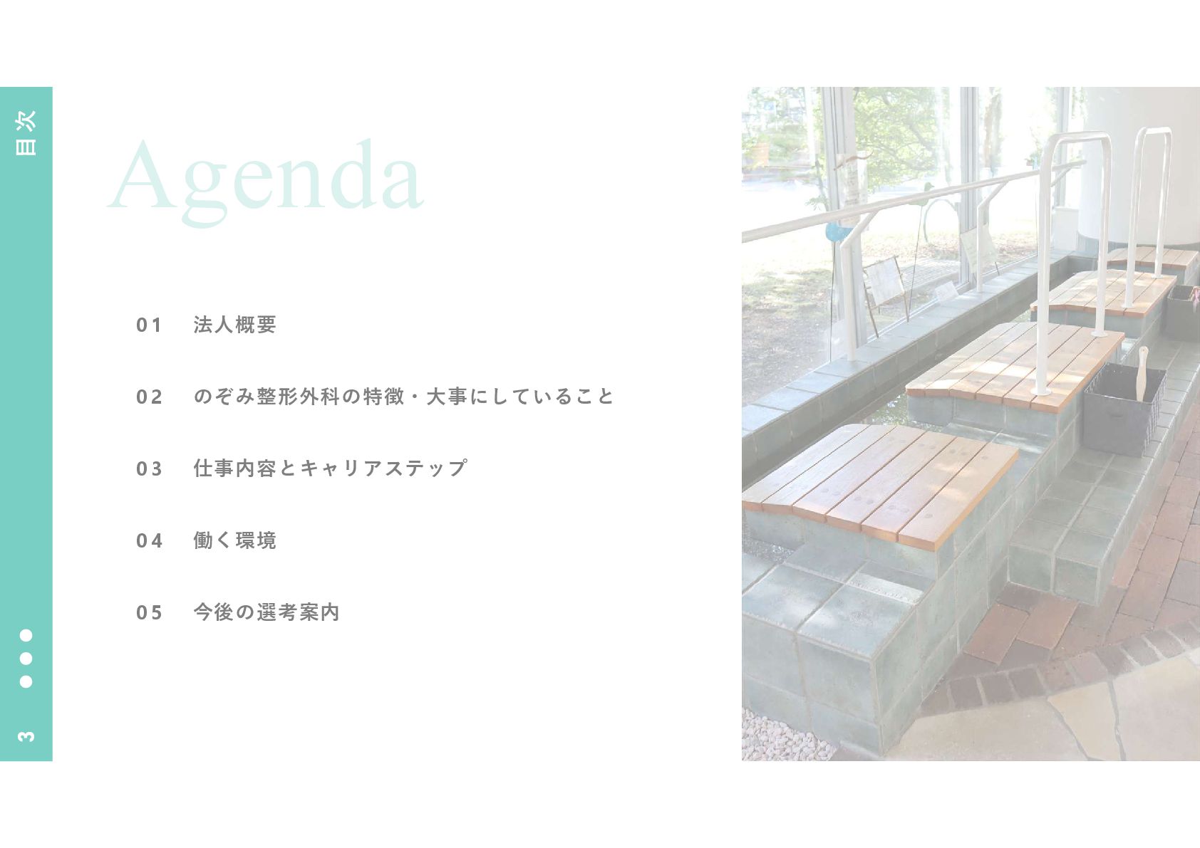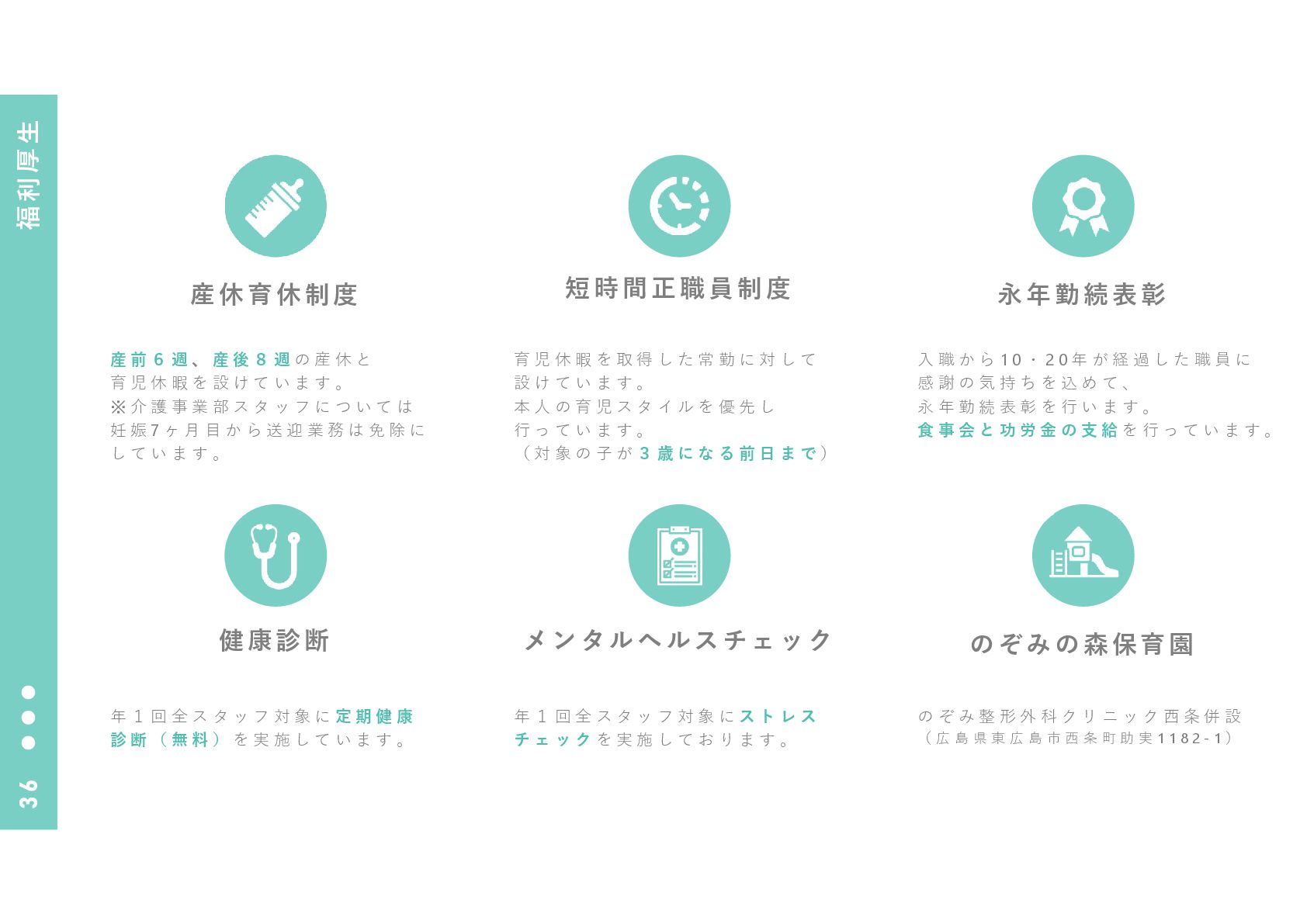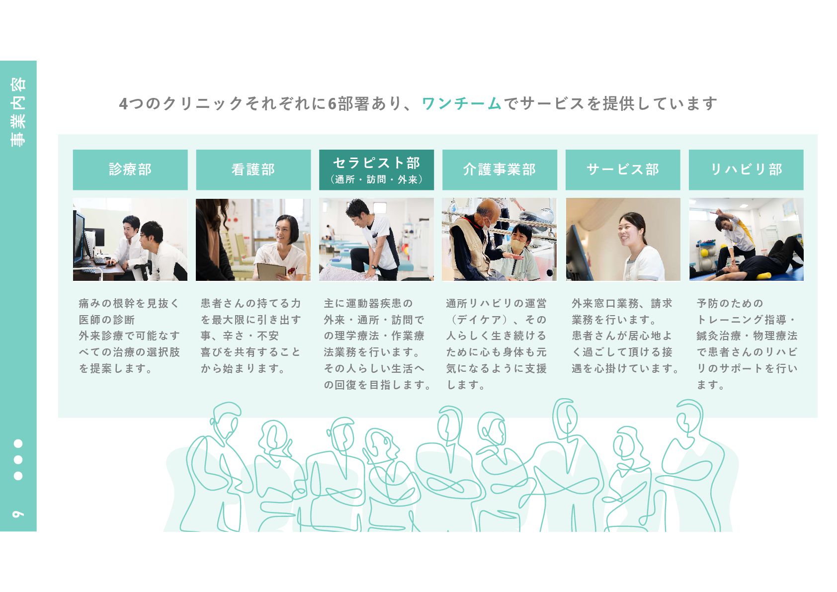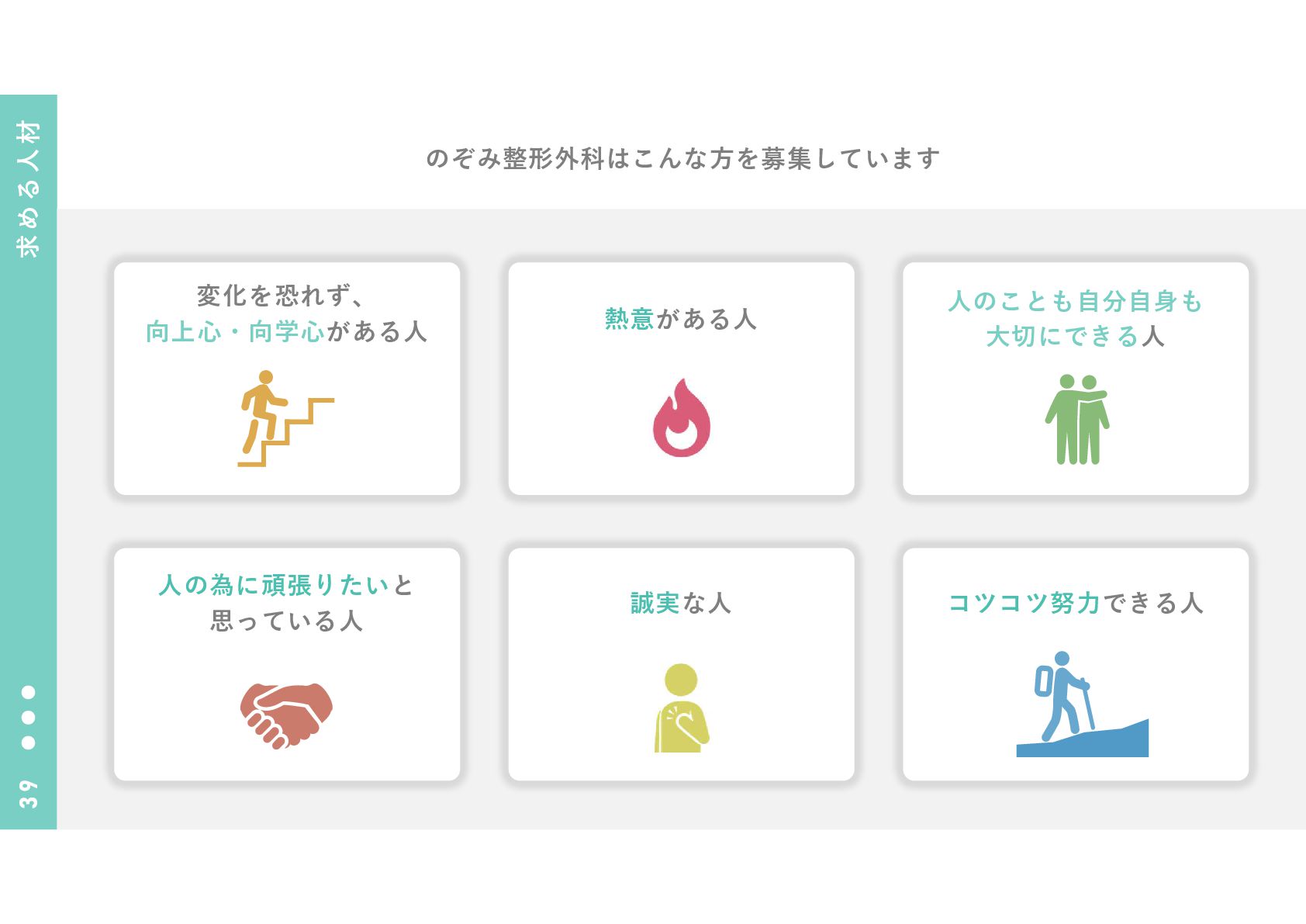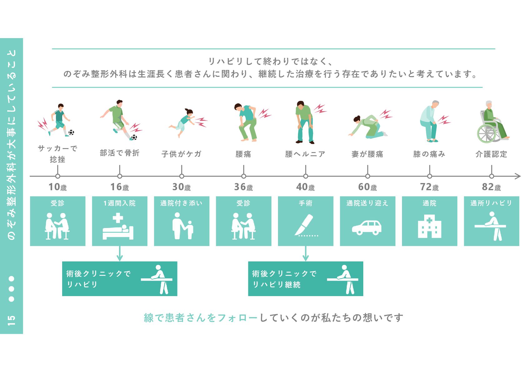 来院数 早期に様々な症例の経験が積めるため、スキルが身に付くスピードも速いことが特徴 平均対応人数/日 入 職 後 13,432 7,996 5,863 4,927 西 条 整 形 ヒ ロ シ マ 整 形 寺 家 整 形 ス タ ジ ア ム 整 形 来院患者数/月 1,157 577 559 449 西 条 整 形 ヒ ロ シ マ 整 形 寺 家 整 形 ス タ ジ ア ム 整 形 初診数/月 47 23 23 18 西 条 整 形 ヒ ロ シ マ 整 形 寺 家 整 形 ス タ ジ ア ム 整 形 初診数/日 当院 200~600名の来院がある 1 カ 月 3 カ 月 半 年 5人 5~10人 10~15人 ※ 整形外科クリニック 平均来院数 100名/日 程度