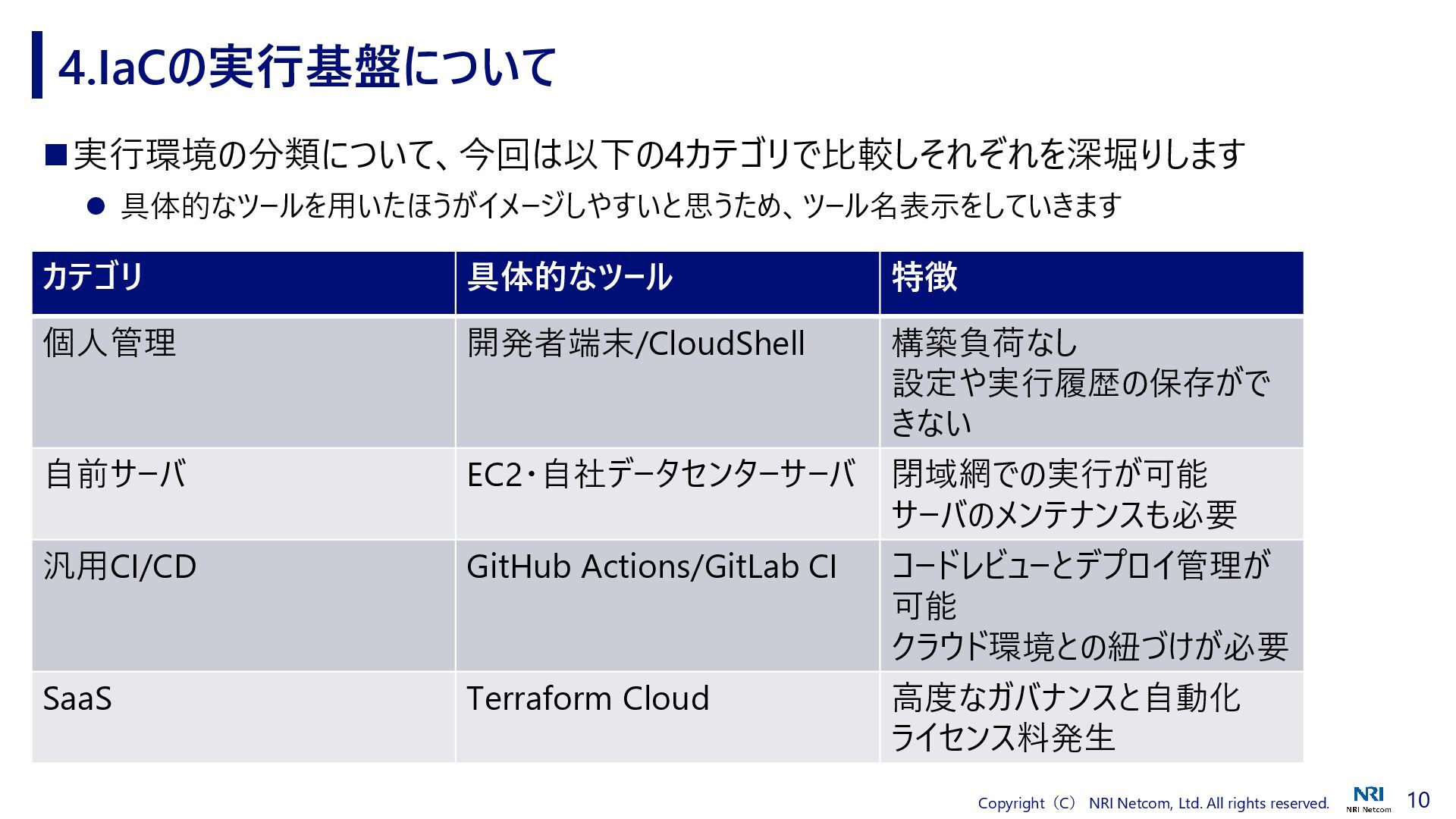 どこで打鍵するのが良い? IaCの実行基盤選定について 〜 NRIネットコム TECH AND DESIGN STUDY #92 〜