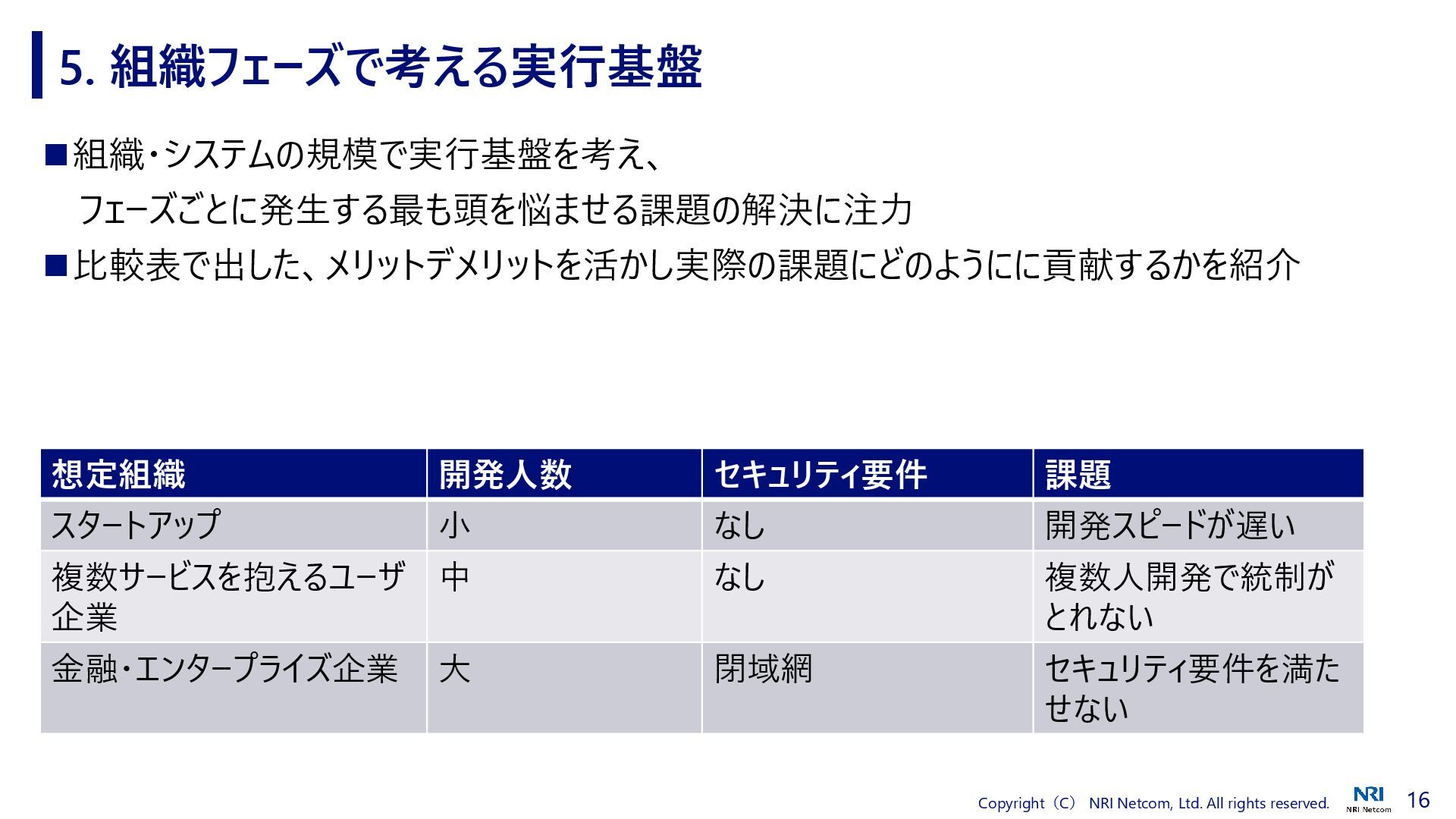 15 Copyright(C) NRI Netcom, Ltd. All rights reserved. 5. 組織フェーズで考える実行基盤