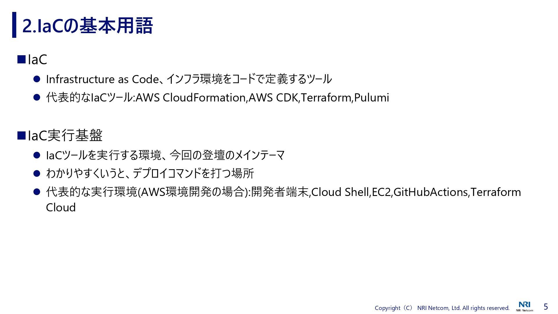 4 Copyright(C) NRI Netcom, Ltd. All rights reserved. 2. IaCの基本知識