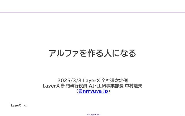 1 © LayerX Inc. LayerX Inc. アルファを作る人になる 2025/3/3 LayerX 全社週次定例