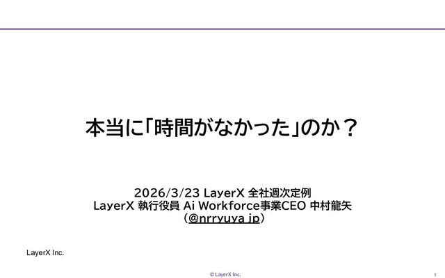 1 © LayerX Inc. LayerX Inc. 本当に「時間がなかった」のか? 2026/3/23 LayerX 全社週次定例