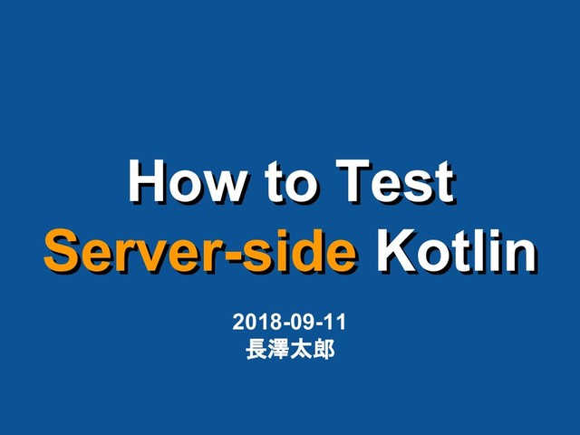 How to Test Server-side Kotlin 2018-09-11 長澤太郎