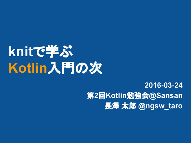 knitで学ぶ Kotlin入門の次 2016-03-24 第2回Kotlin勉強会@Sansan 長澤 太郎 @ngsw_taro