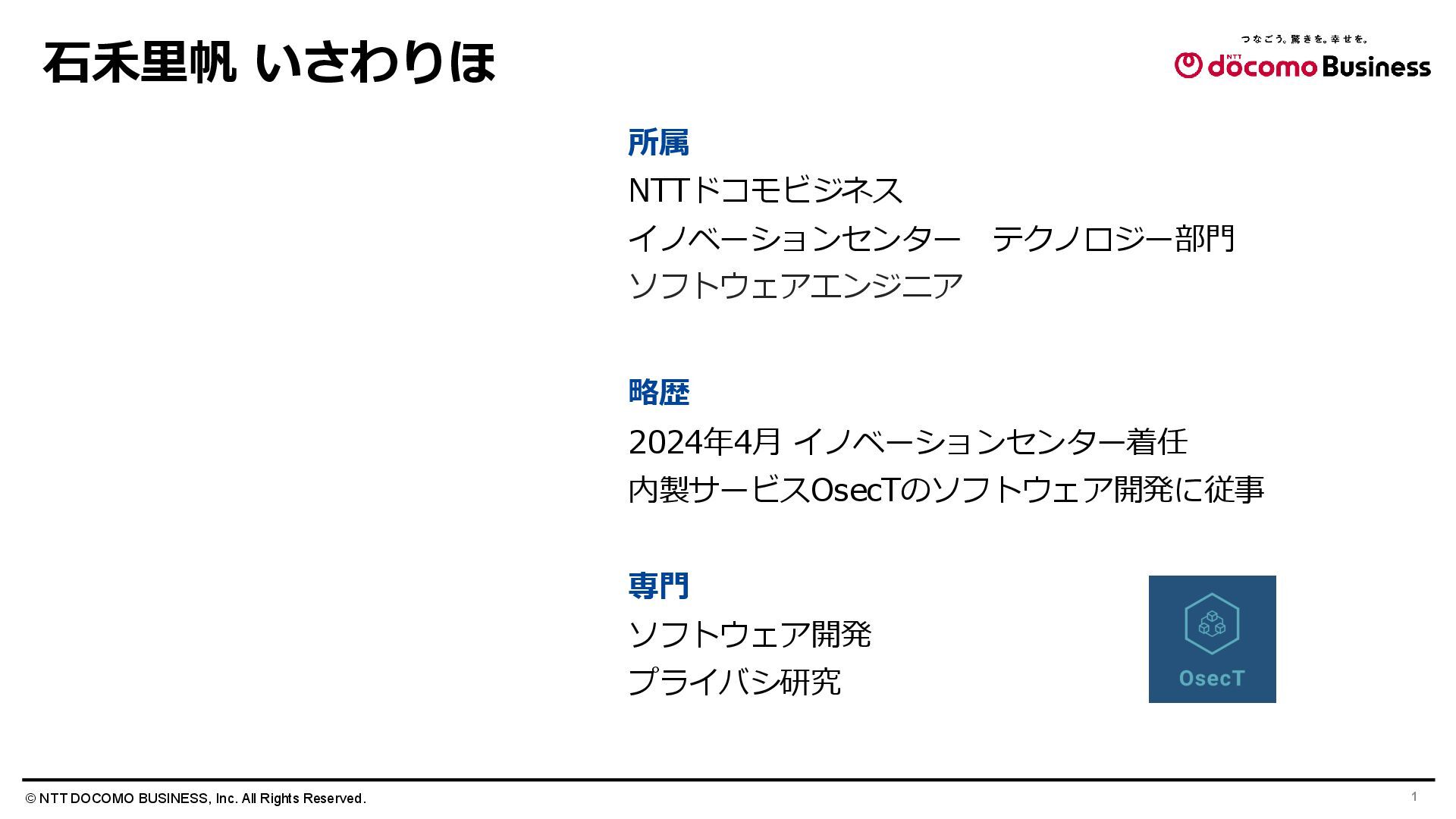 2. © NTT DOCOMO BUSINESS, Inc. All Rights Reserved. 1 石禾里帆