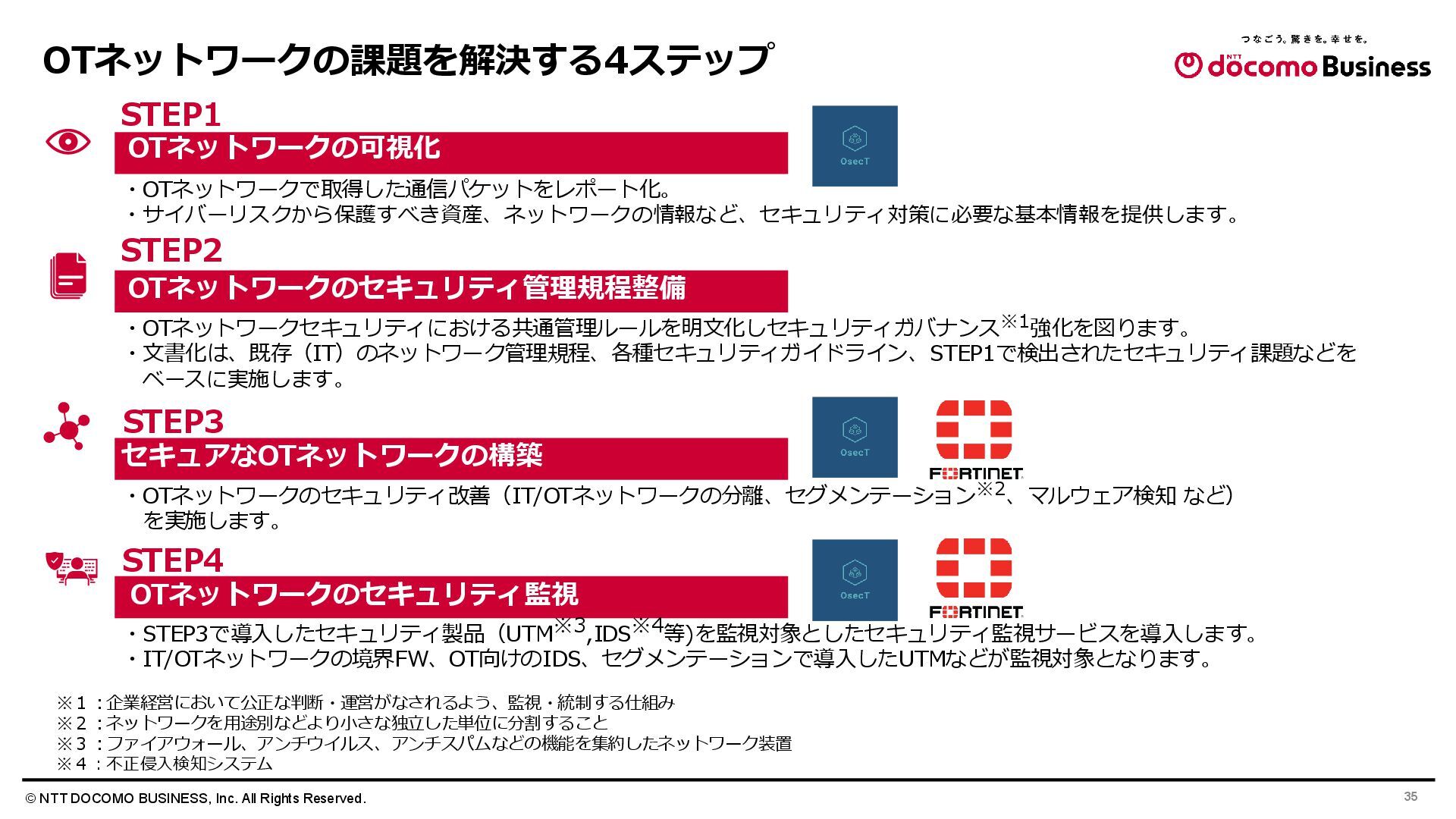 30. © NTT DOCOMO BUSINESS, Inc. All Rights Reserved. 35 OTネットワークの課題を解決する4ステップ