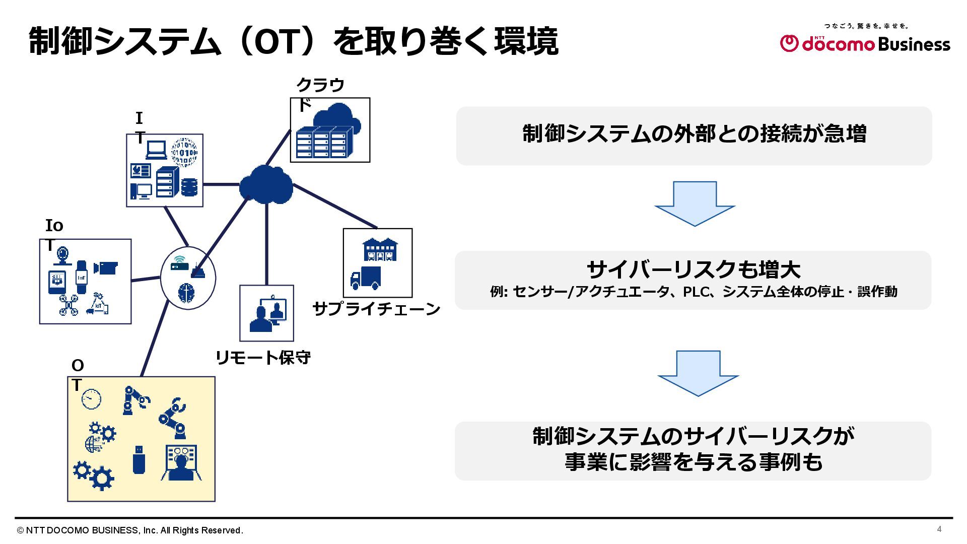 4. © NTT DOCOMO BUSINESS, Inc. All Rights Reserved. 4 制御システム(OT)を取り巻く環境