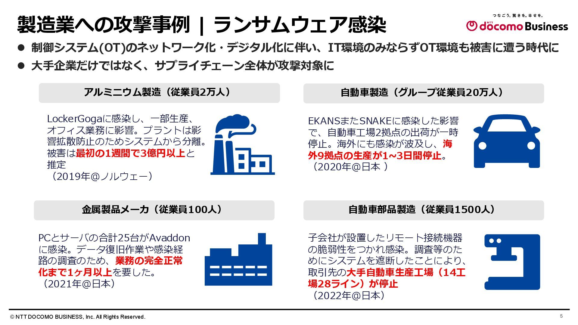 5. © NTT DOCOMO BUSINESS, Inc. All Rights Reserved. 5 製造業への攻撃事例