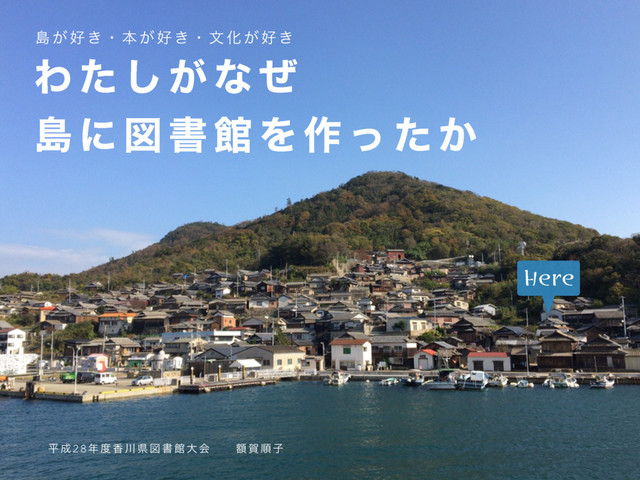香川県図書館大会講演スライド。男木島図書館ができるまで、と、出来てから半年の様子など。